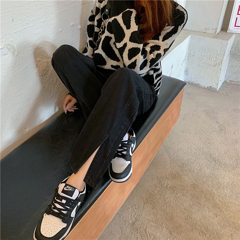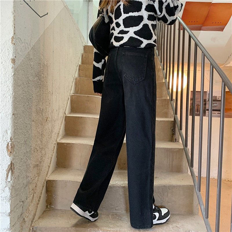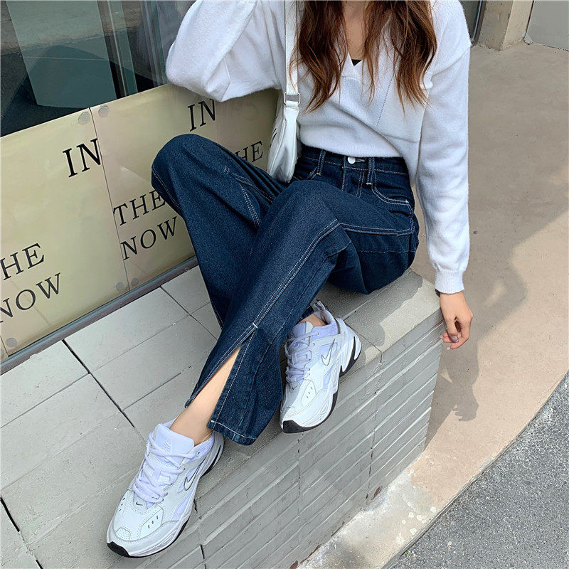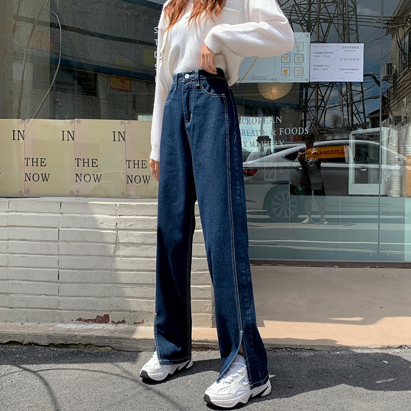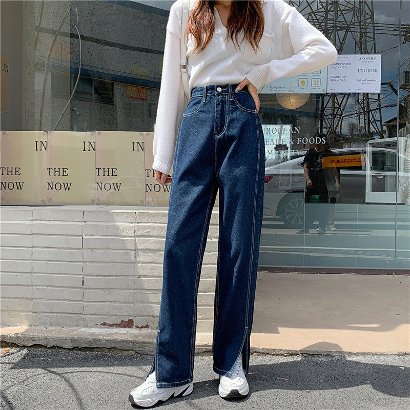 Джинсы, демисезонные осенние штаны, свободный прямой крой, высокая талия, большой размер