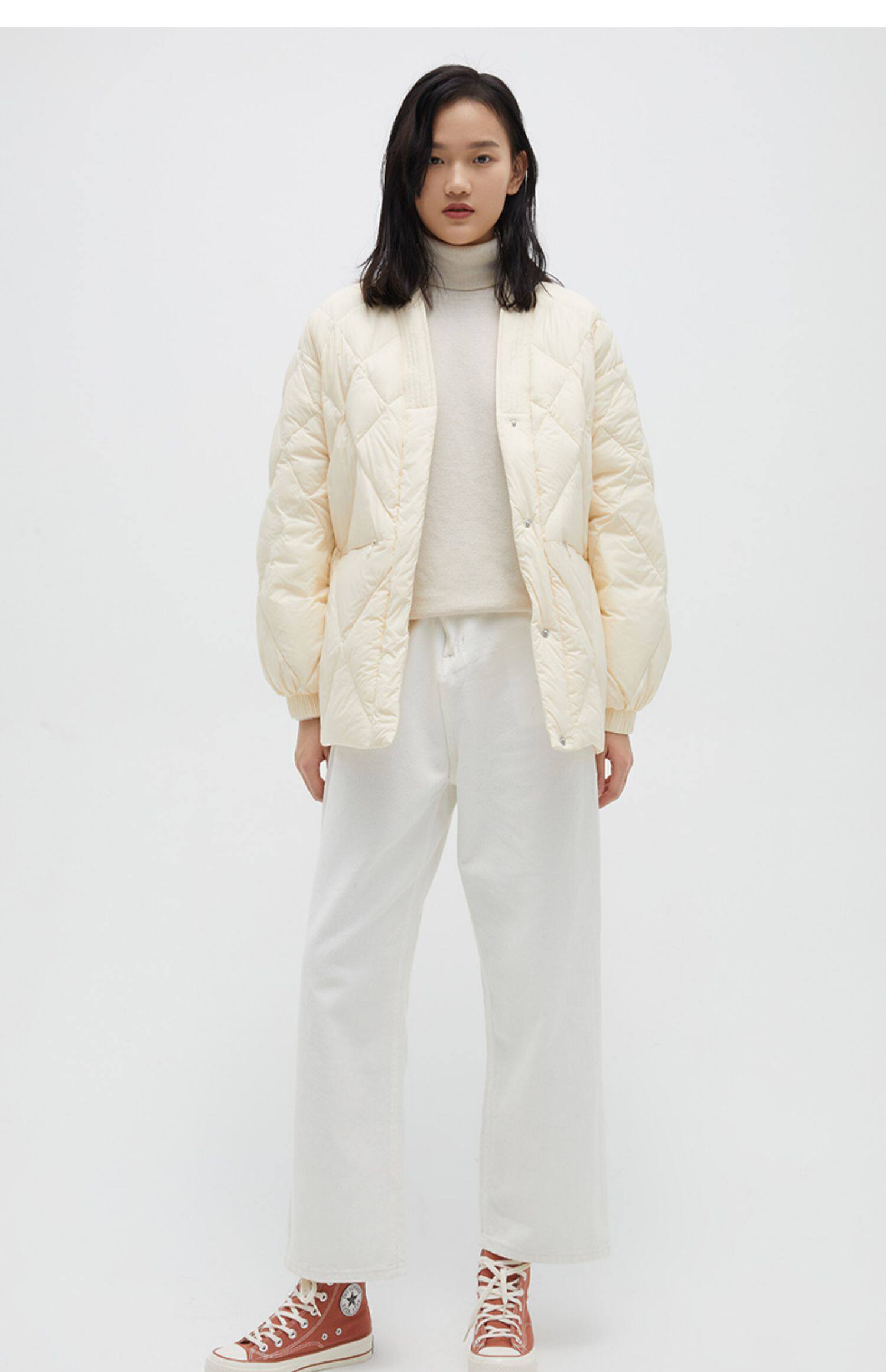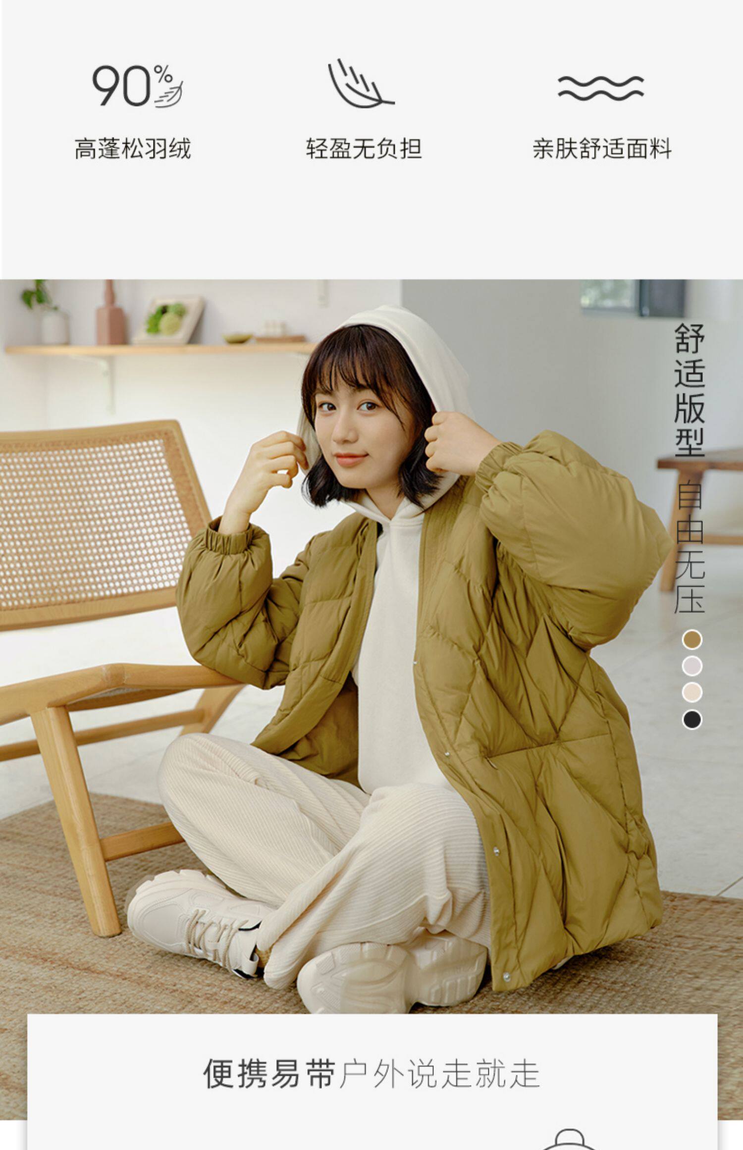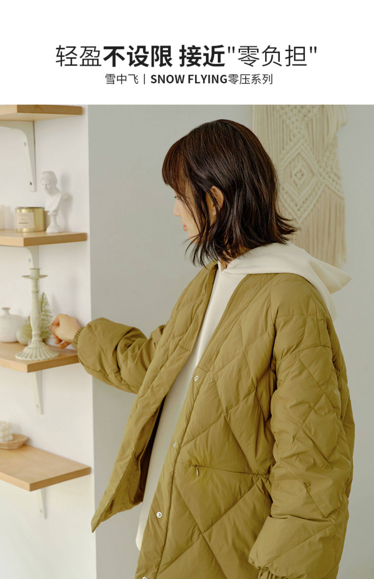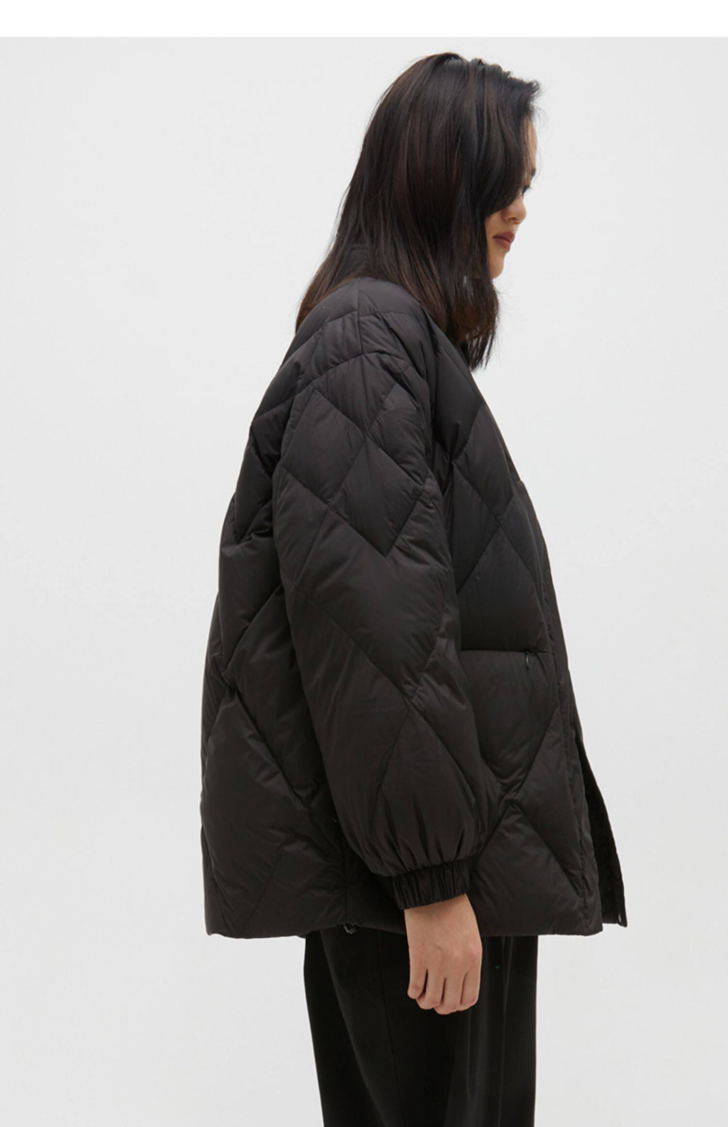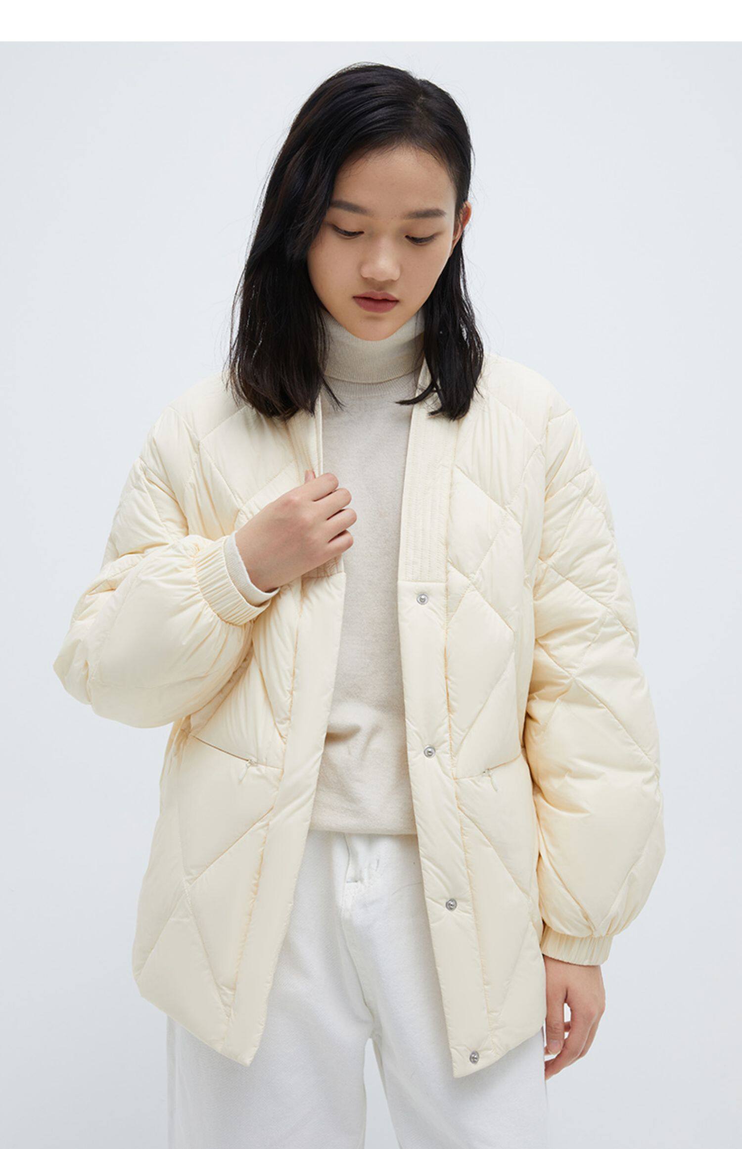 Демисезонный короткий комфортный пуховик, V-образный вырез