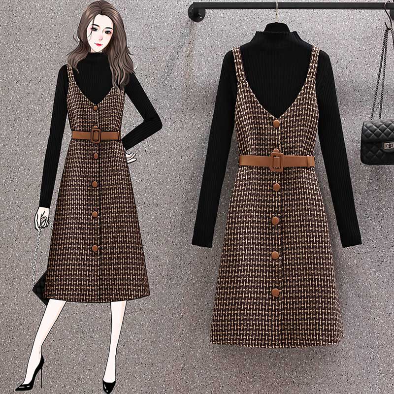 Демисезонные модные шерстяные подтяжки, платье, комплект, большой размер, коллекция 2021, подходит для полных девушек