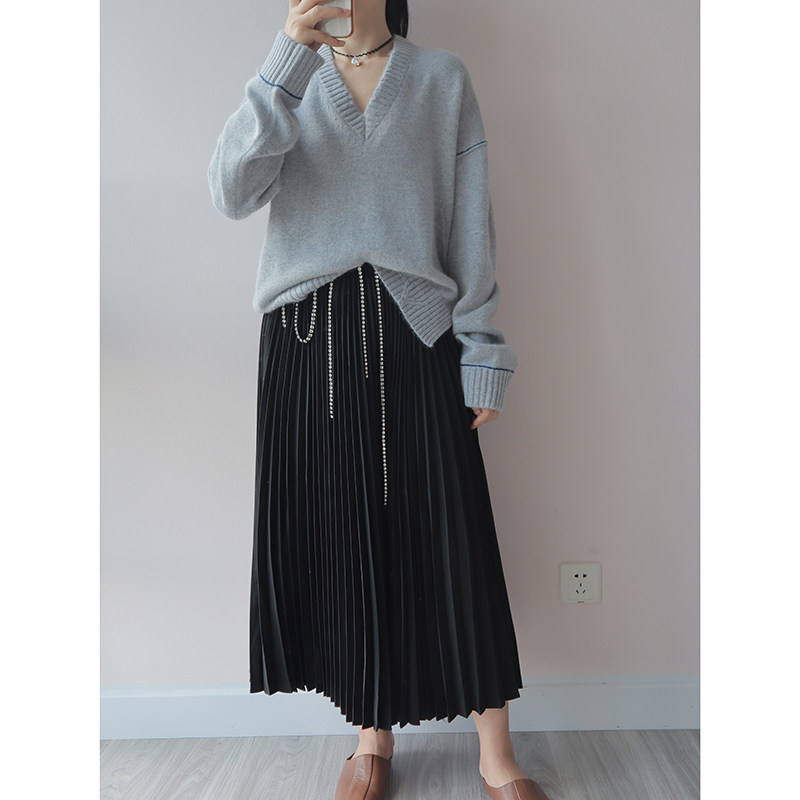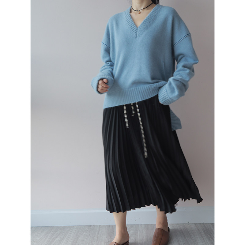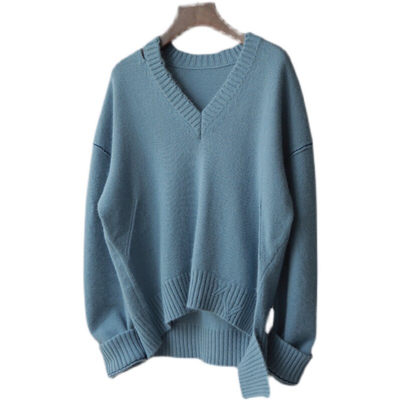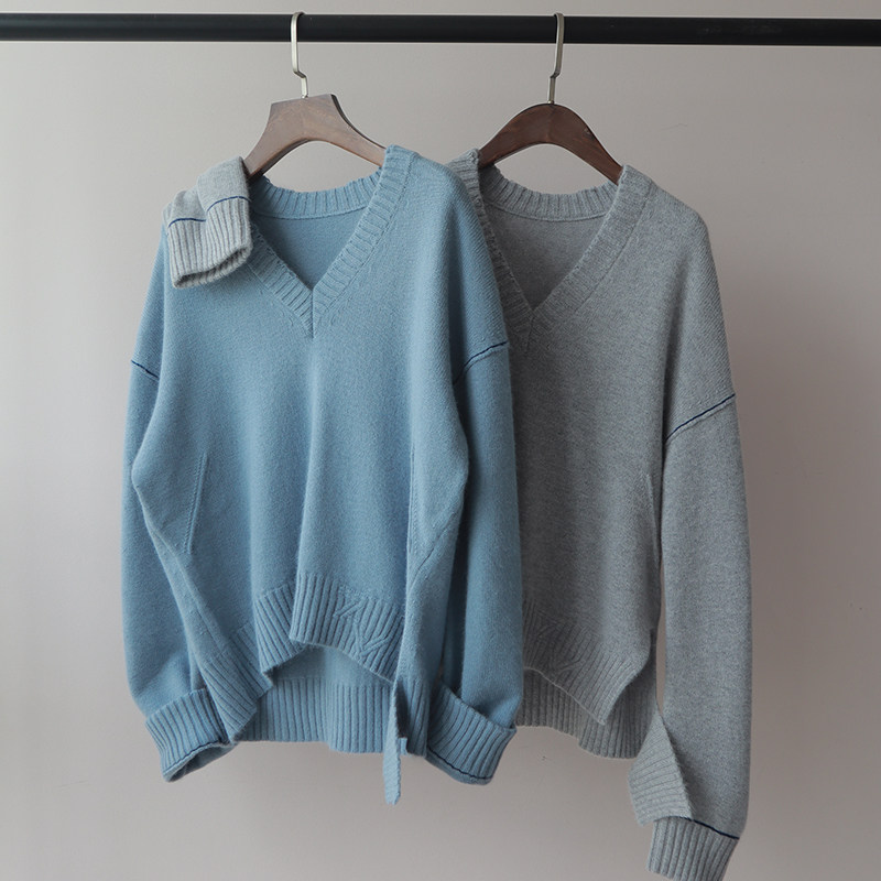ZV Torn Wind Contrast Line V-образное вырезок ленивый свитер