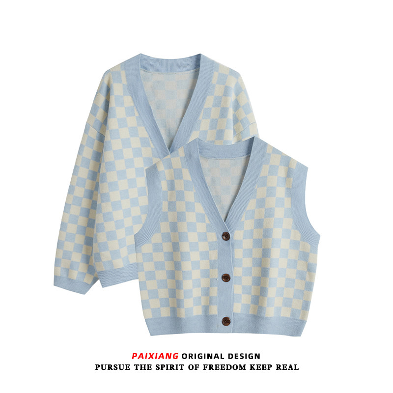 Шахматы, кардиган, осенний ретро жилет, трикотажный свитер