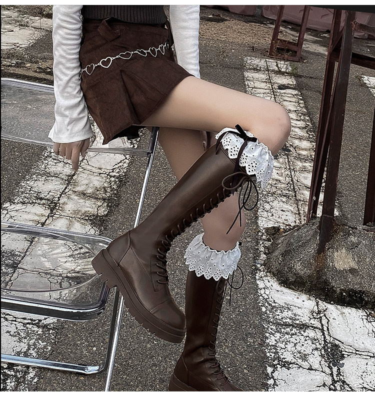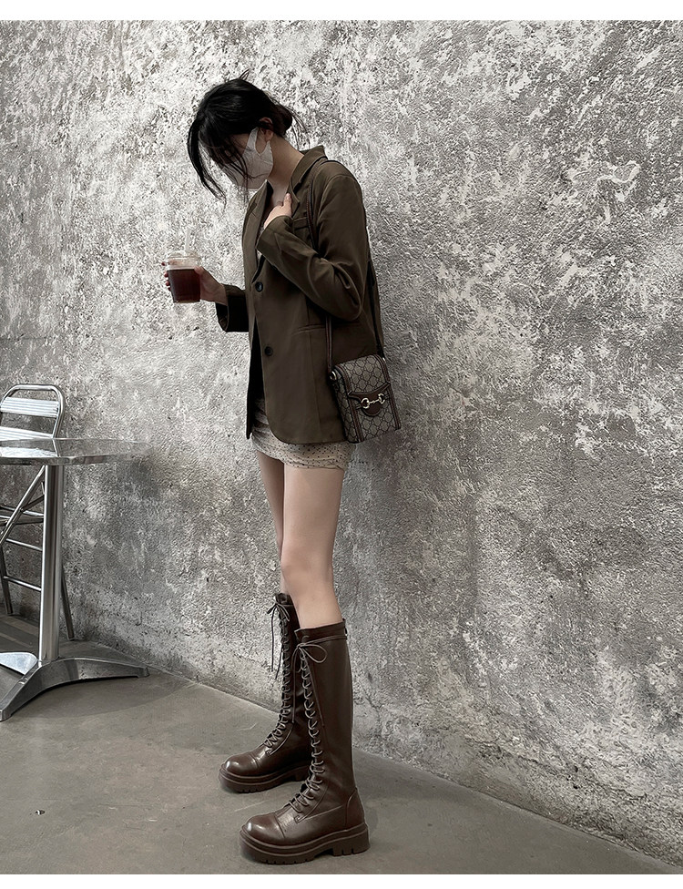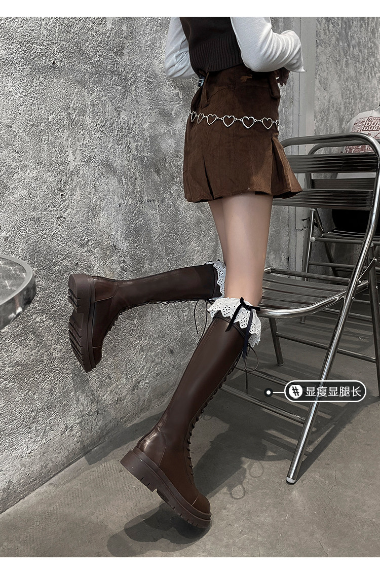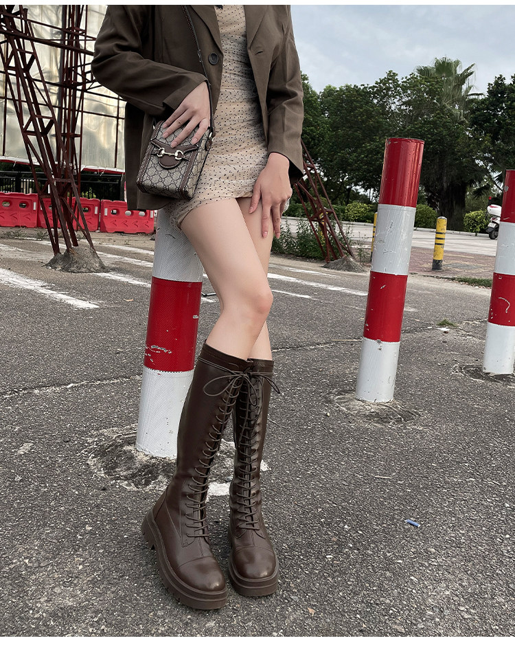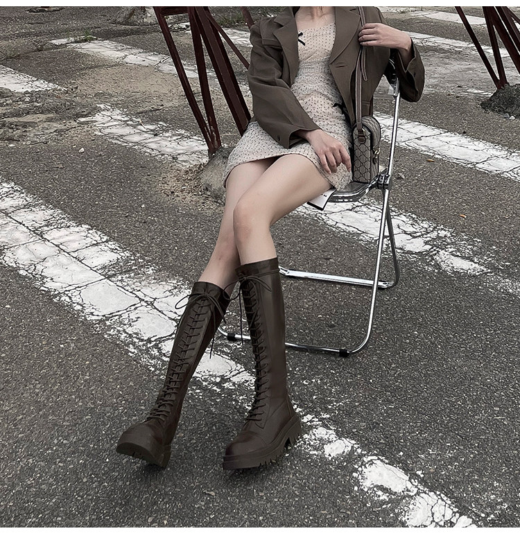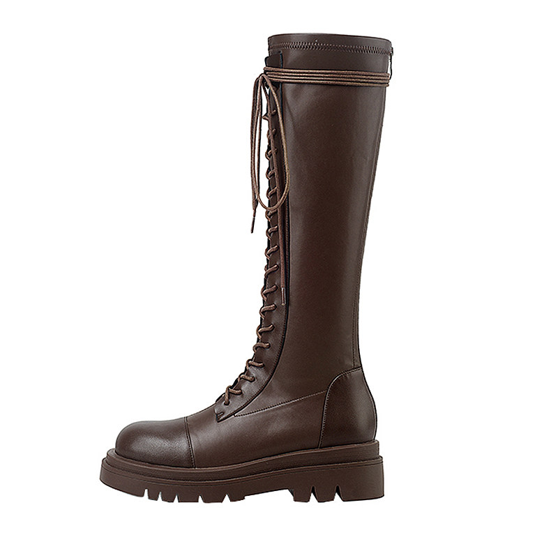 Коричневые эластичные высокие сапоги в английском стиле на платформе, в британском стиле, по фигуре