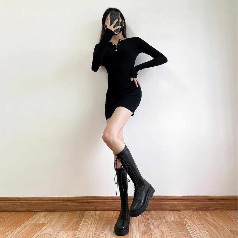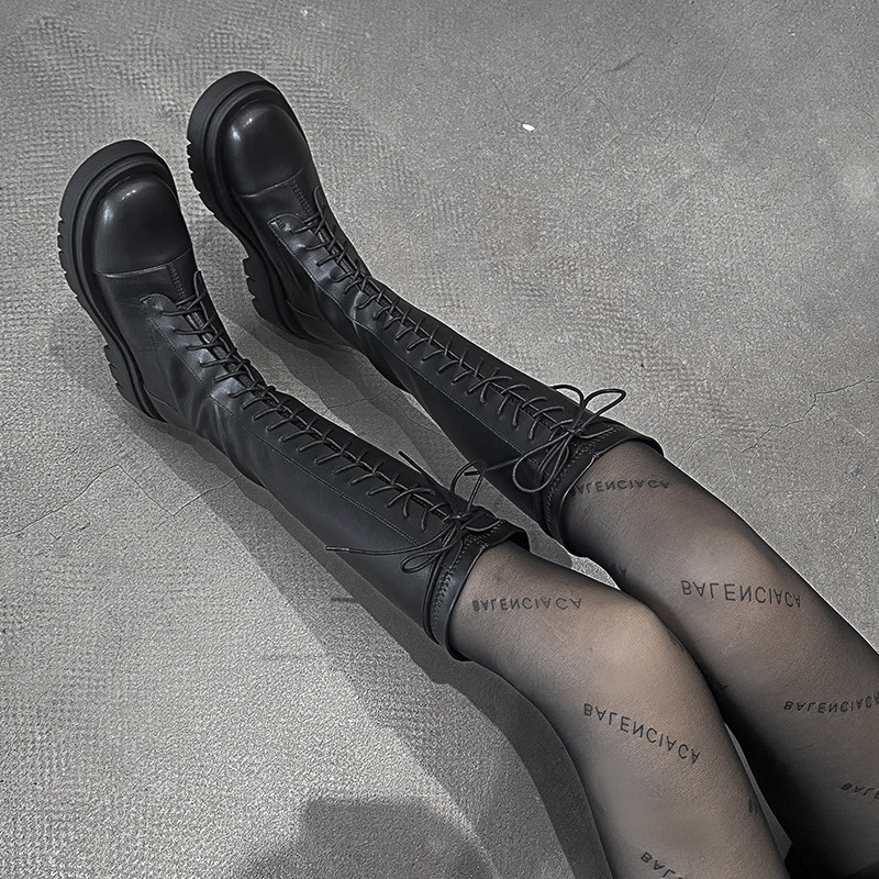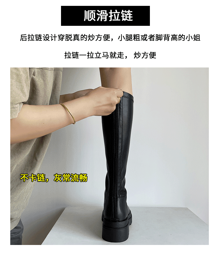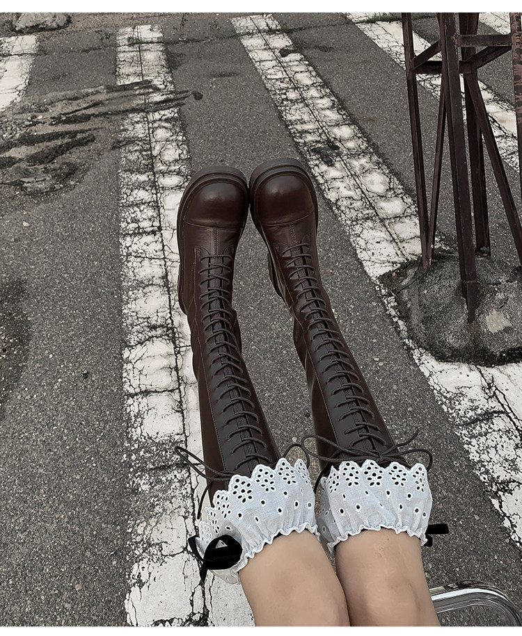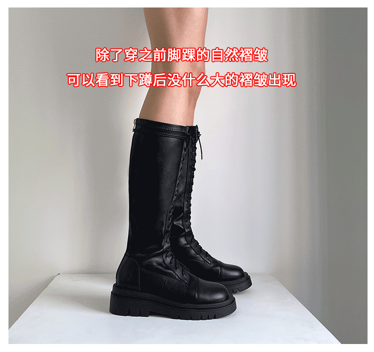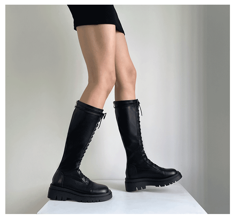 Коричневые эластичные высокие сапоги в английском стиле на платформе, в британском стиле, по фигуре
