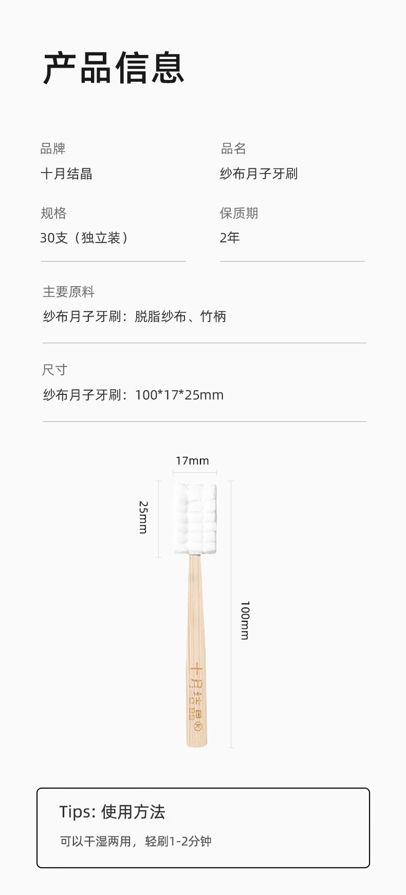 十月结晶 Марлевая послеродовая зубная щетка для молодой матери, лечебная упаковка для ухода за кожей, 30 шт