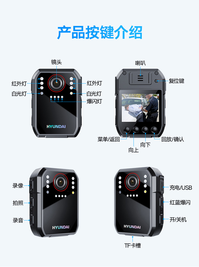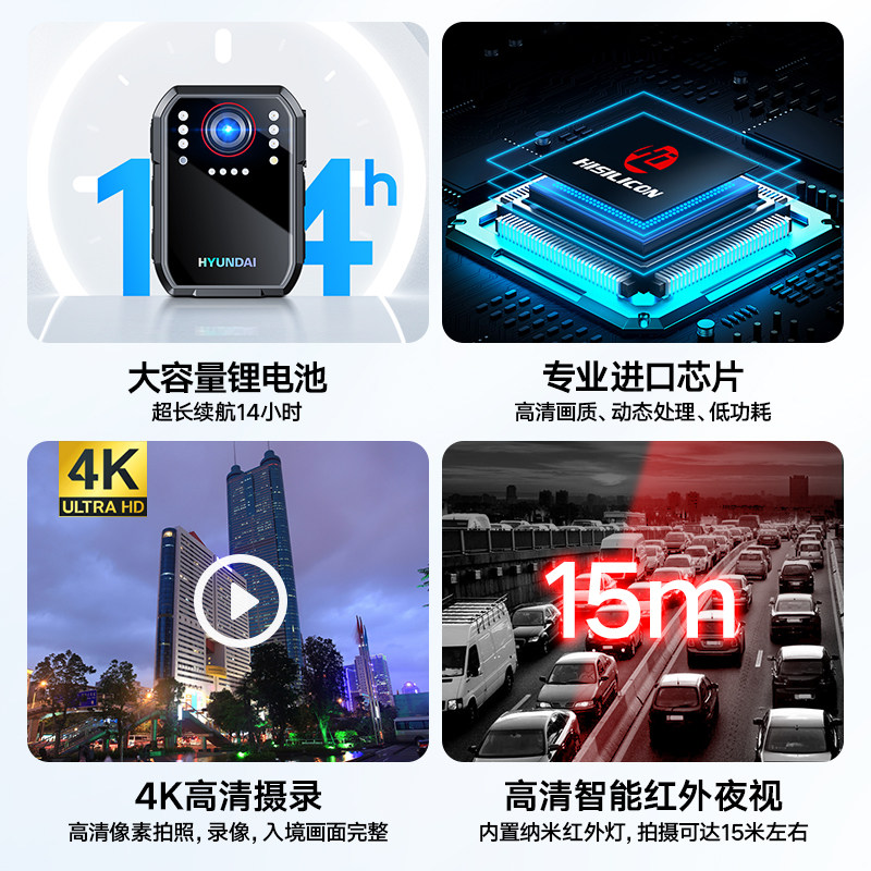 - [4K Ultra-Clear Wi-Fi версия] H08 правоохранительные органы (32 г) Срок службы батареи двойной сад 11ч
