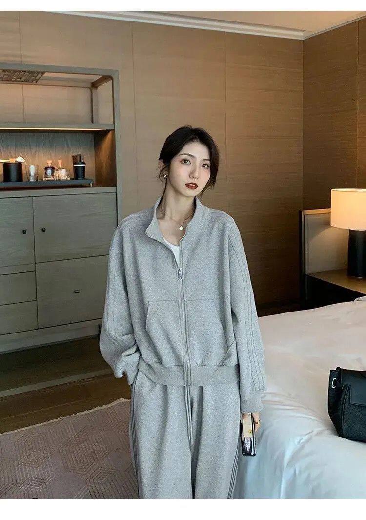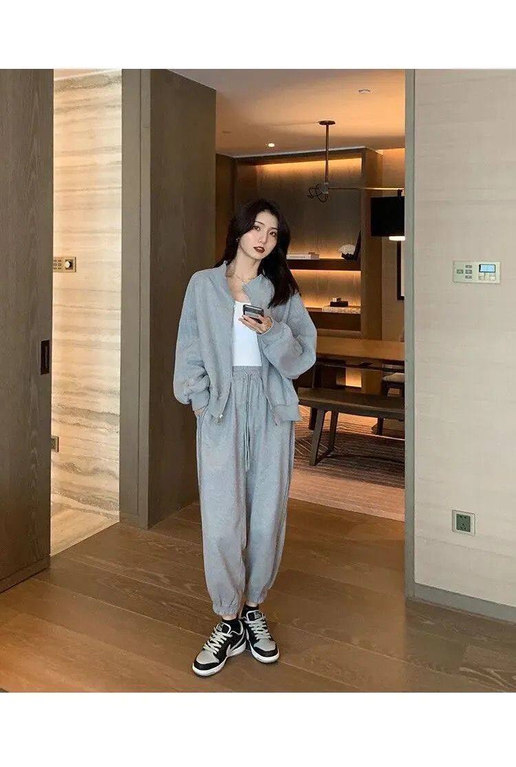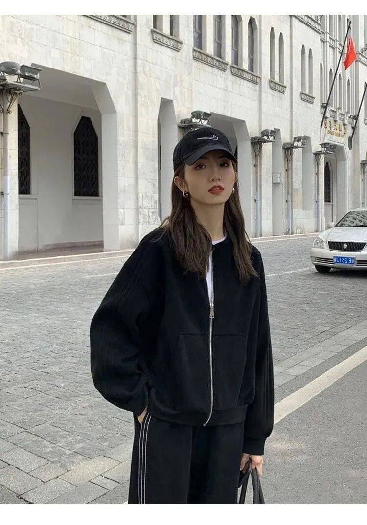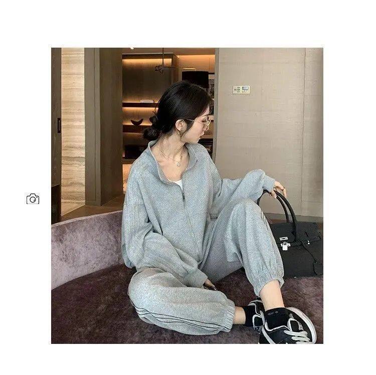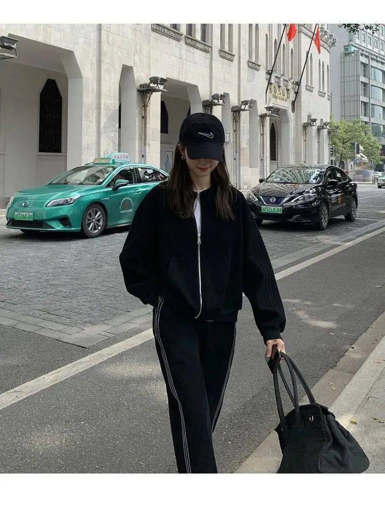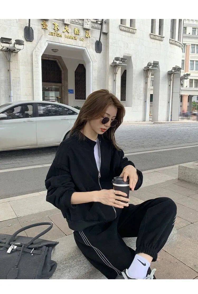 Хлопковая толстовка, спортивный костюм, комплект для школьников и студентов, в корейском стиле, свободный крой, для бега