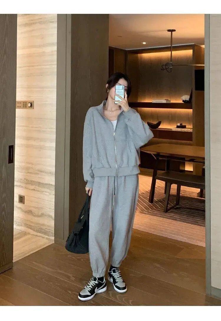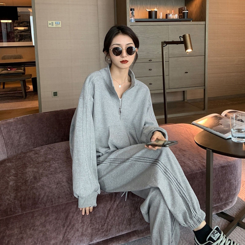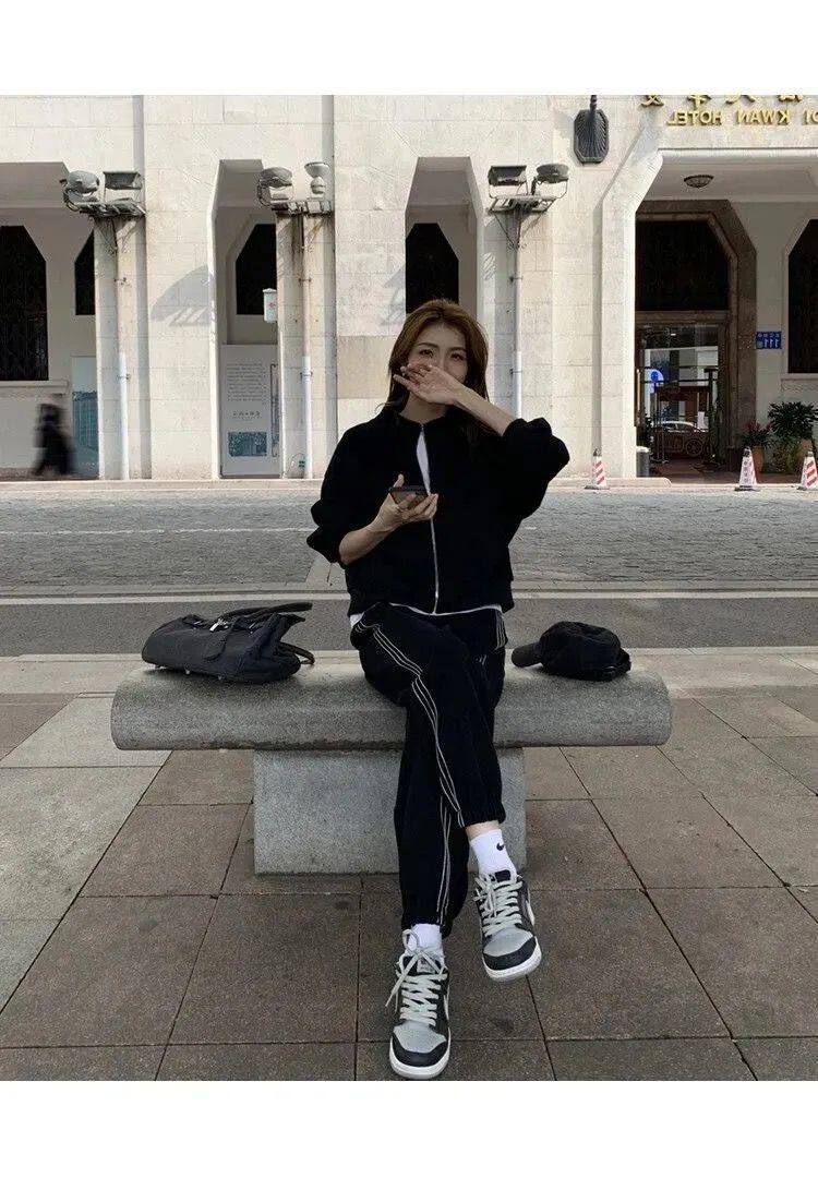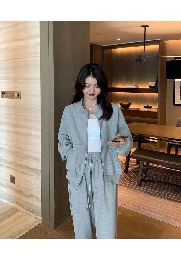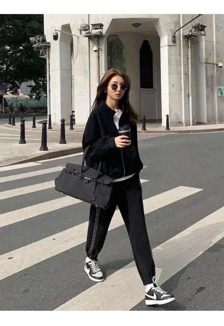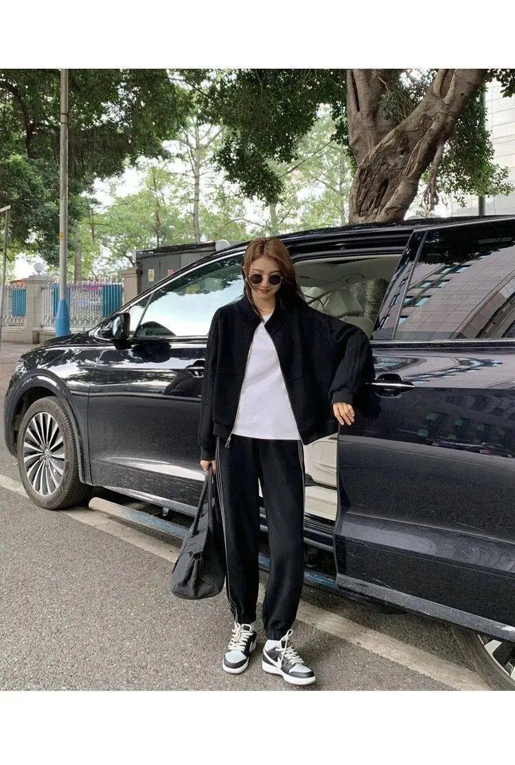 Хлопковая толстовка, спортивный костюм, комплект для школьников и студентов, в корейском стиле, свободный крой, для бега
