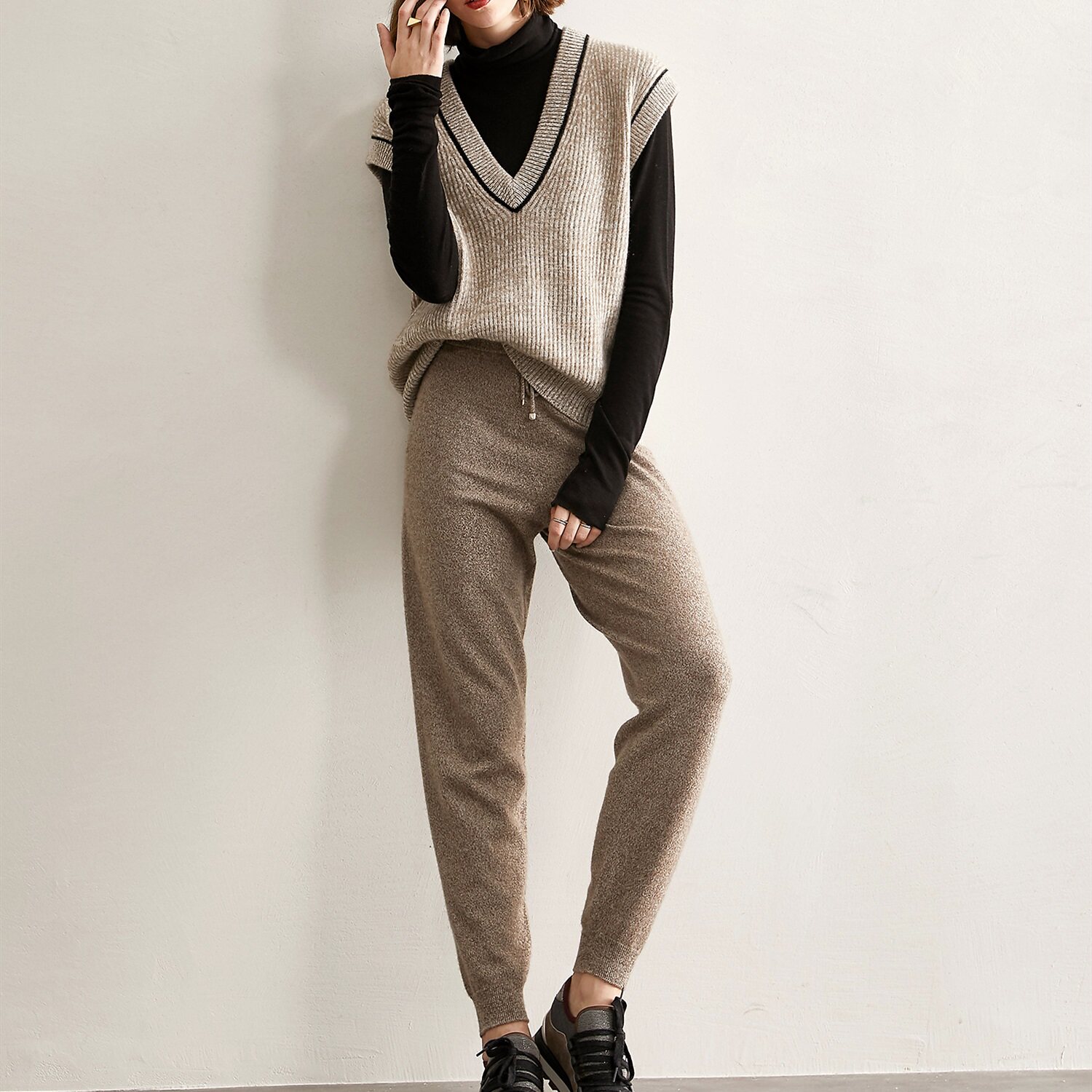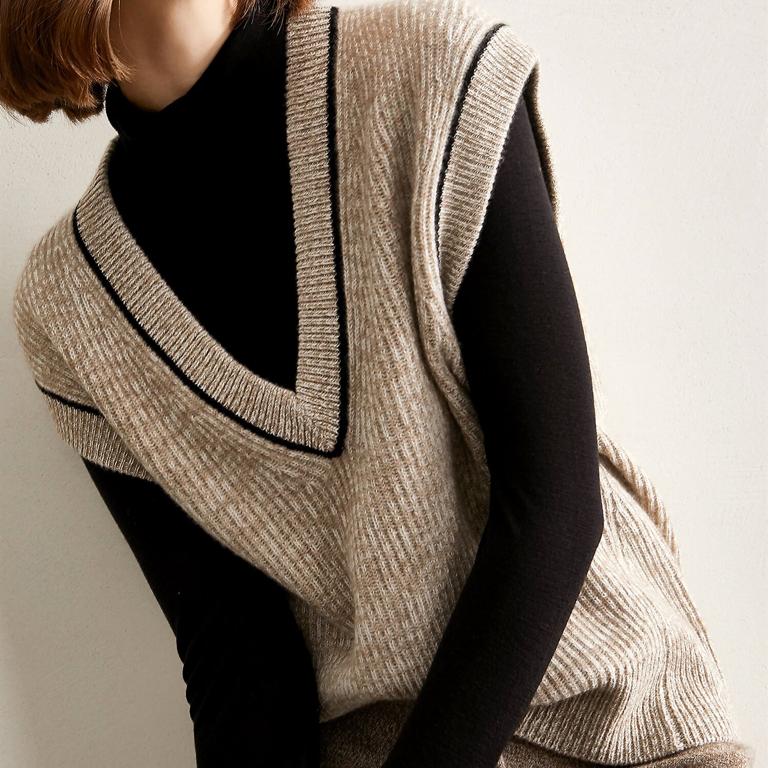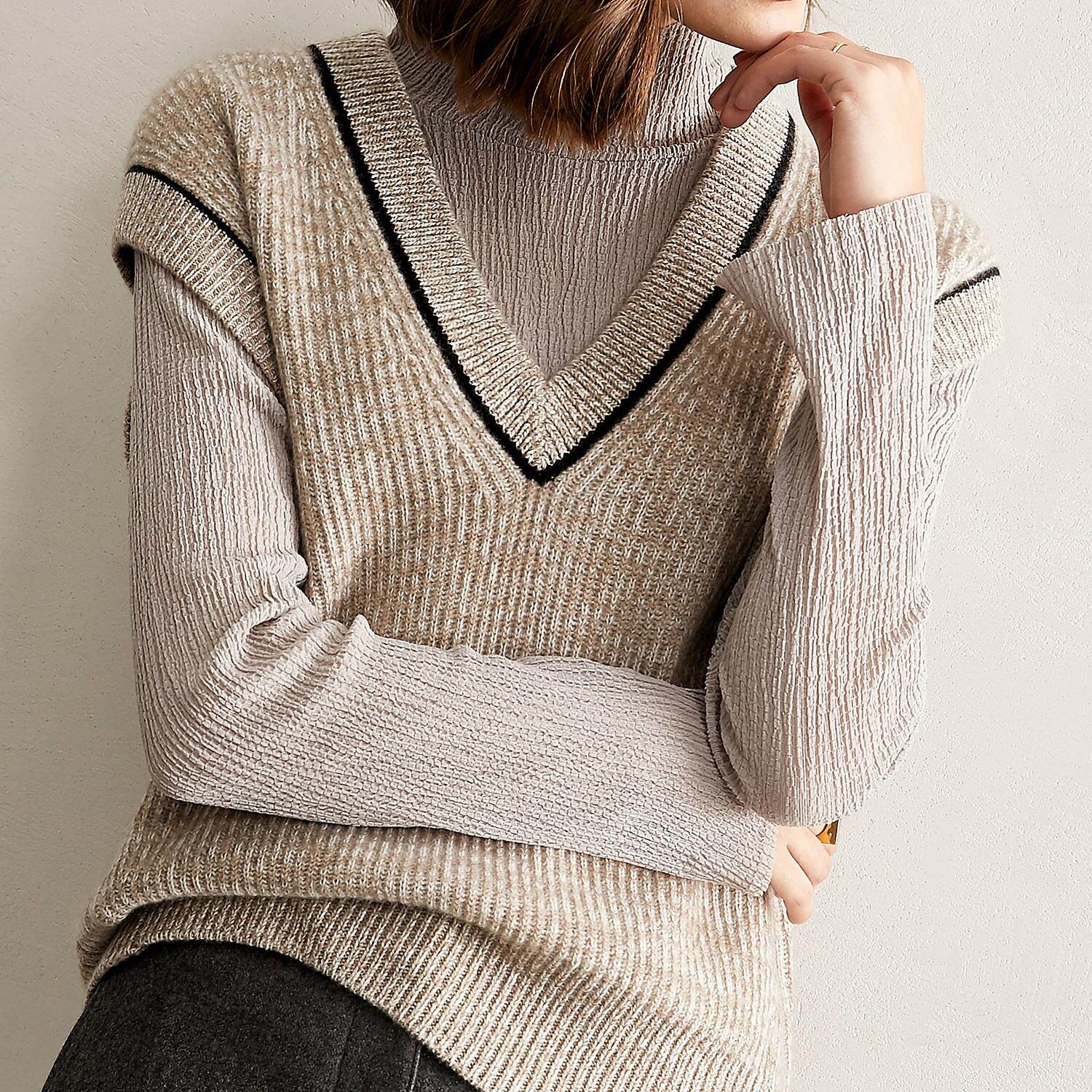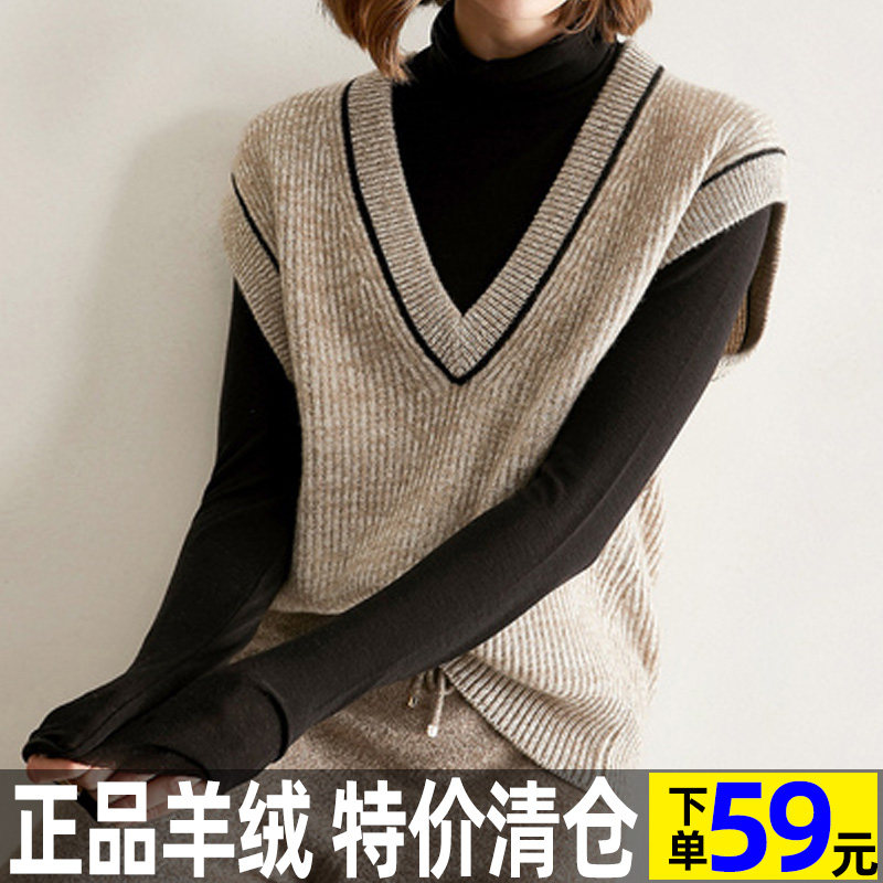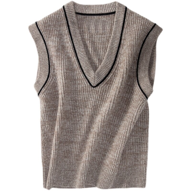 Демисезонный кашемировый утепленный жилет, шерстяной свитер без рукавов, V-образный вырез, свободный крой