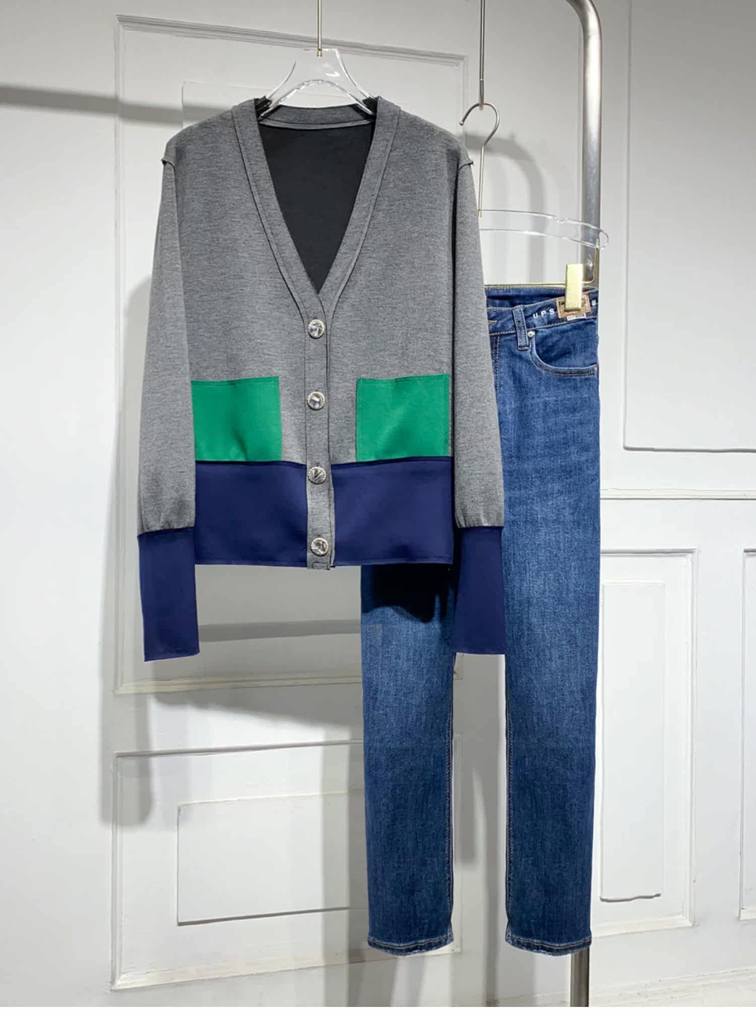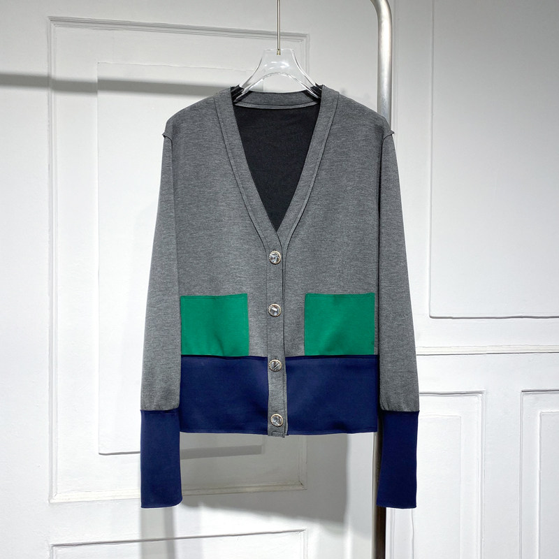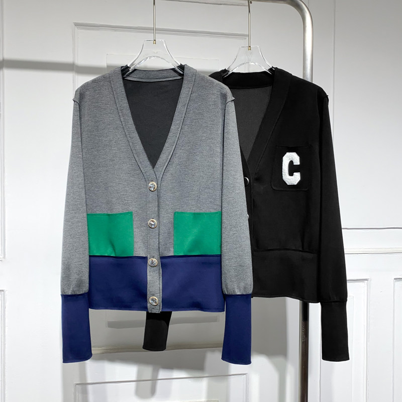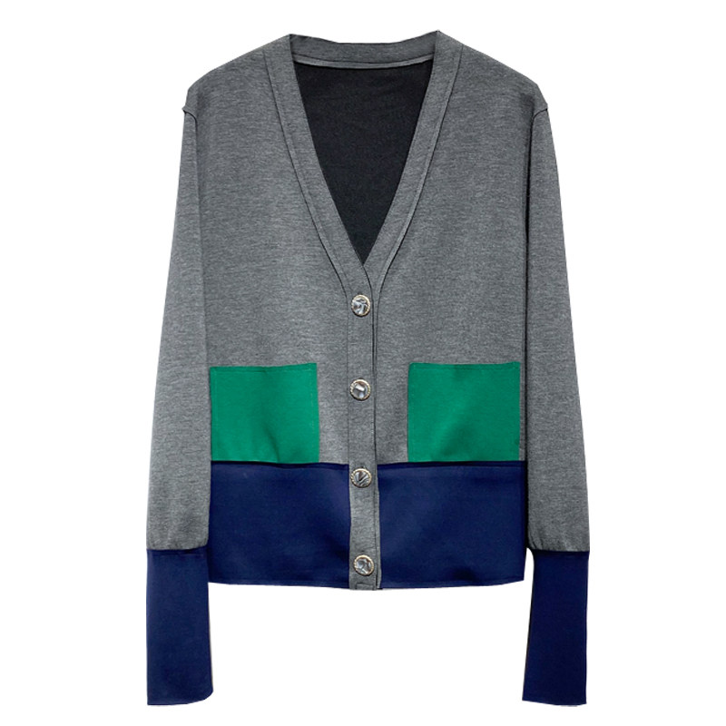 Осенняя куртка, кардиган, коллекция 2021, V-образный вырез, свободный крой