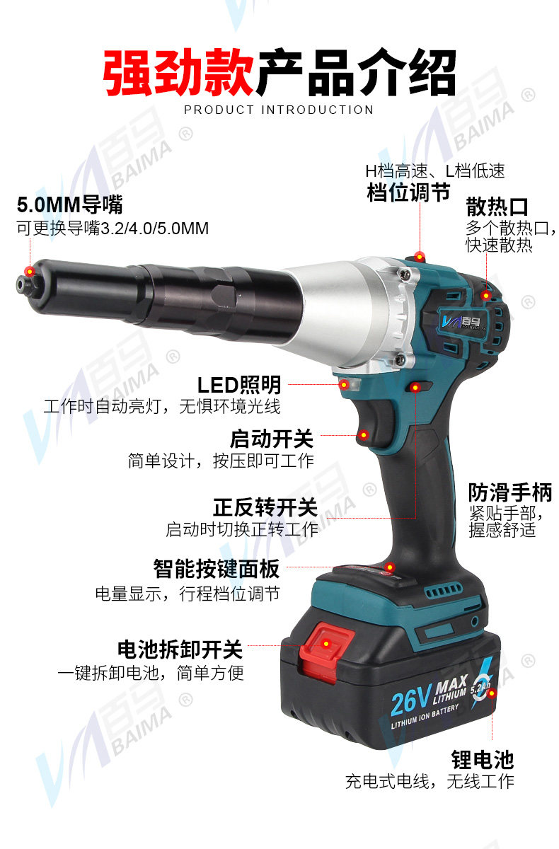 Baima ab Electric Brivet Gun Вытягивание пистолета полного -Автоматическая тяга для зарядки пистолет
