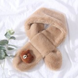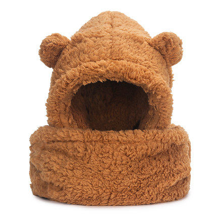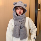 Зимняя шапка, демисезонный универсальный милый бархатный удерживающий тепло шарф с капюшоном, с медвежатами, плюшевая, в корейском стиле