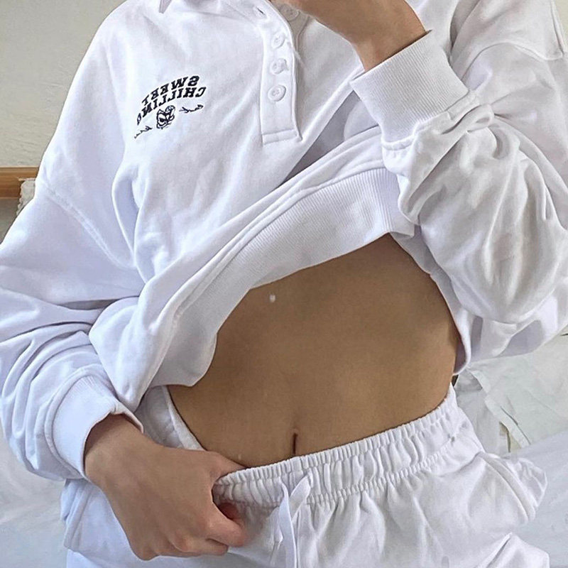 Ретро брендовый тонкий комплект, в американском стиле, с вышивкой, воротник поло, оверсайз