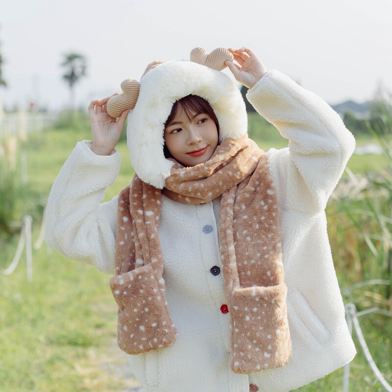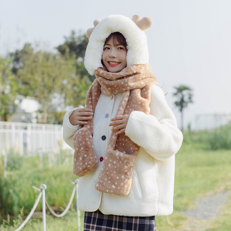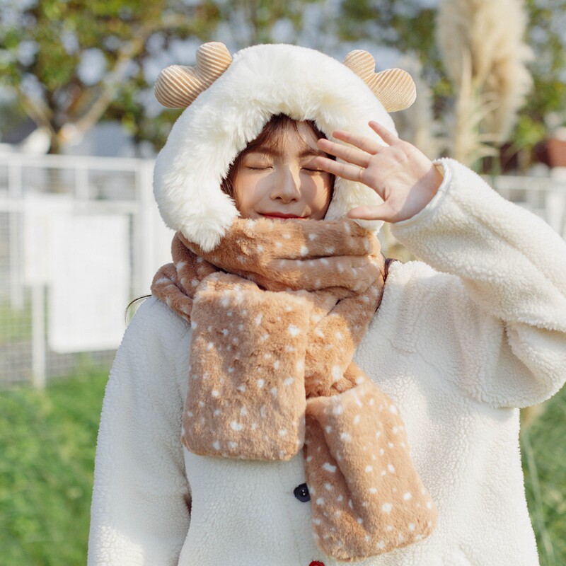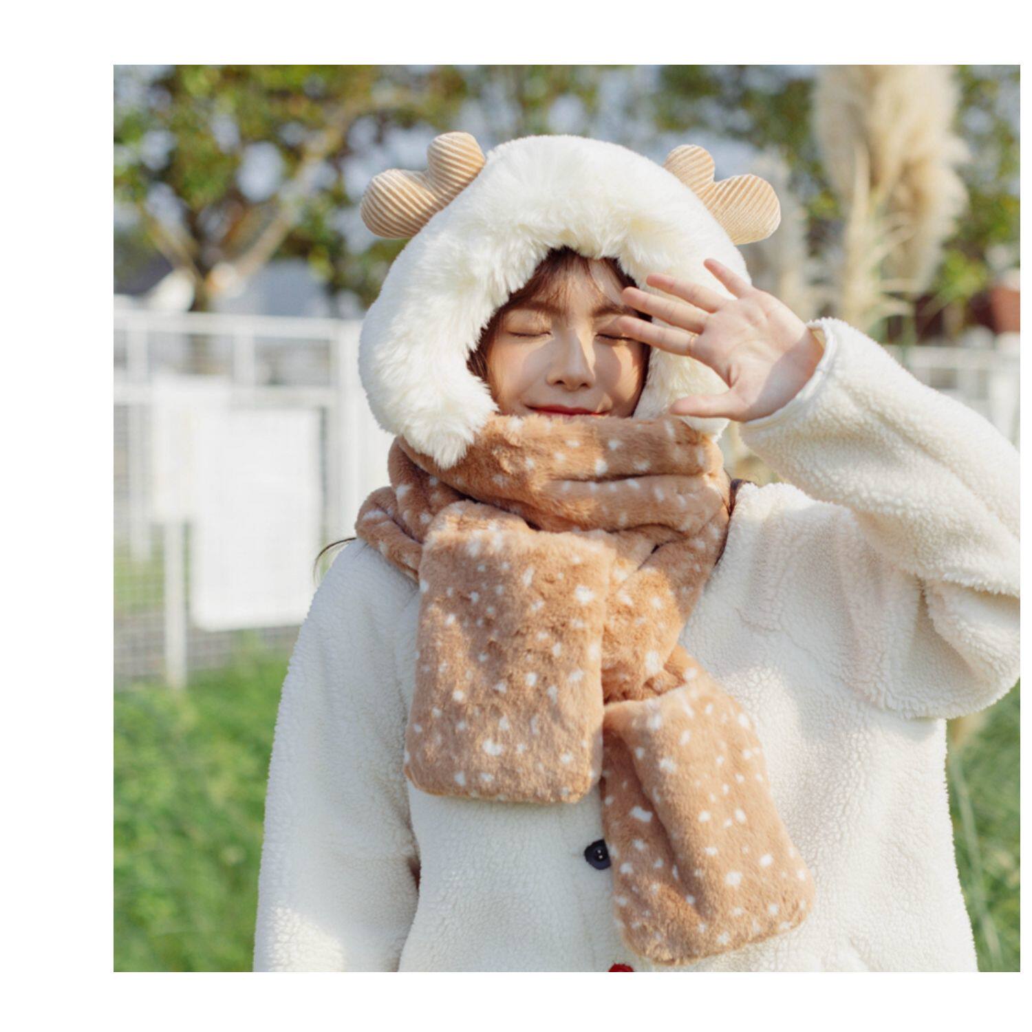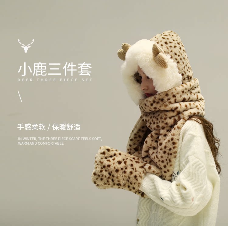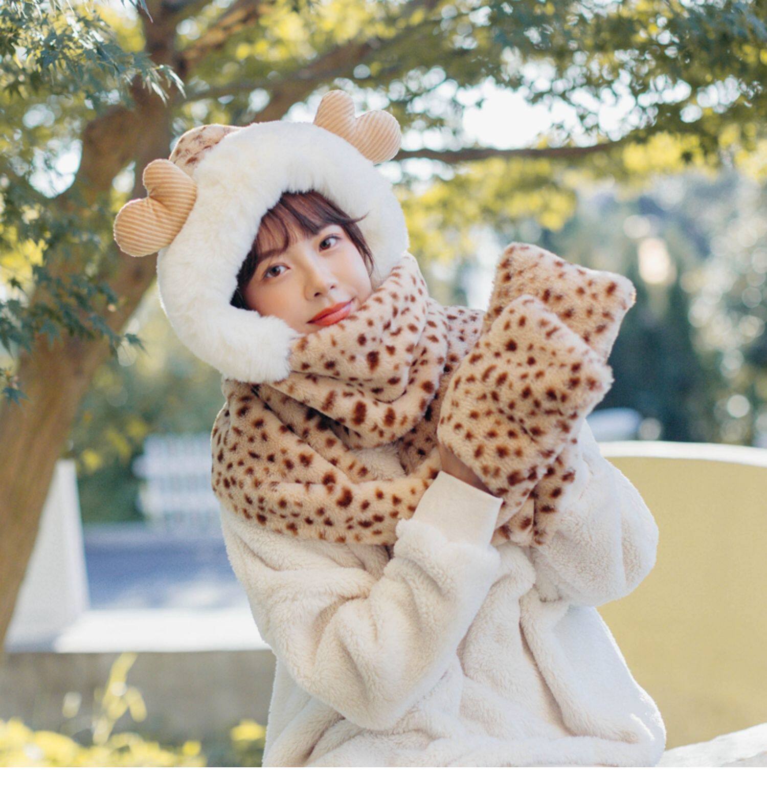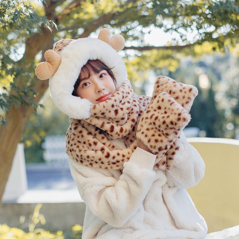 Зимний бархатный милый шарф для школьников, перчатки, шапка для друга, 3 предмета, подарок для девушки