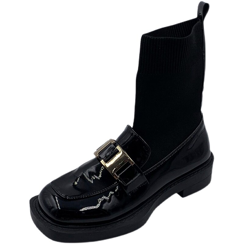 Tide, осенние черные эластичные трендовые ботинки, металлические гольфы в английском стиле, сапоги, коллекция 2021, в британском стиле