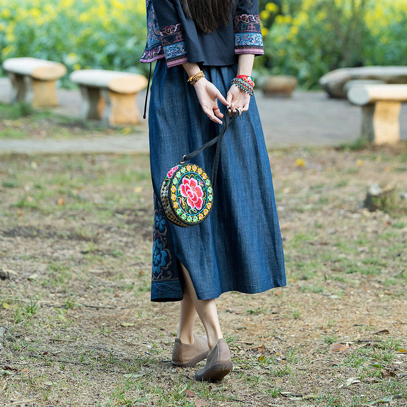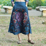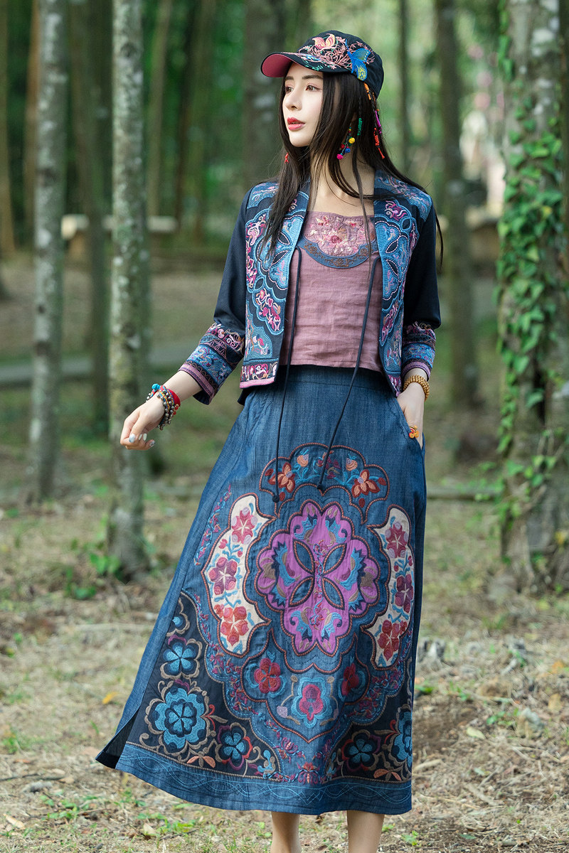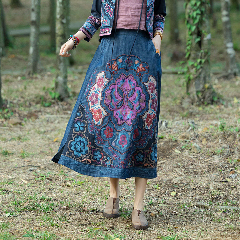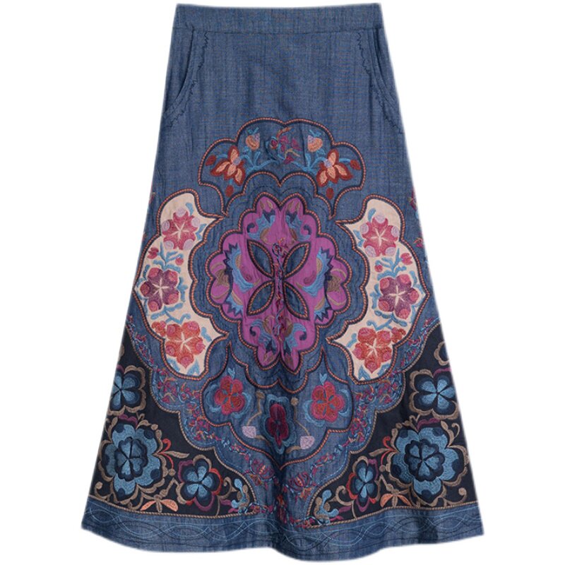 Этнический пластырь, джинсовая юбка, новая коллекция, этнический стиль, с вышивкой