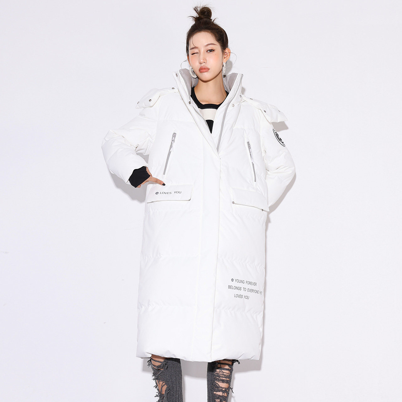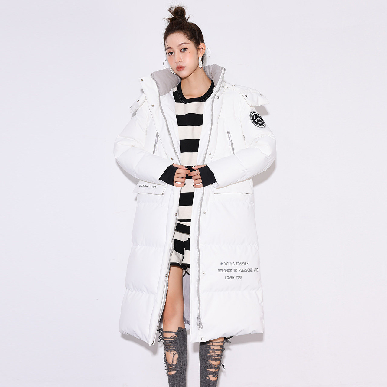 Демисезонная длинная утепленная толстовка с капюшоном, пуховик, коллекция 2021