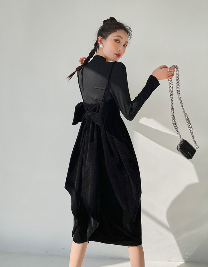 Бархатное платье с бантиком, подвеска из кварца, коллекция 2021, с открытой спиной