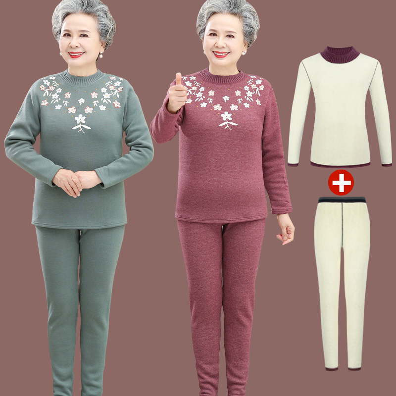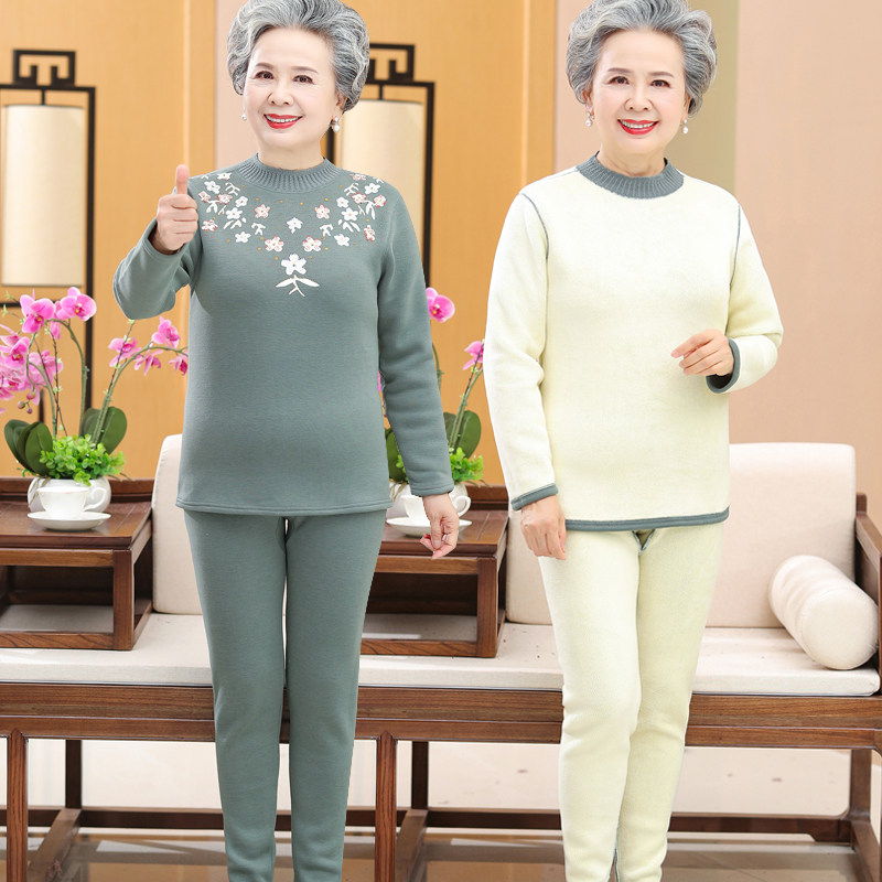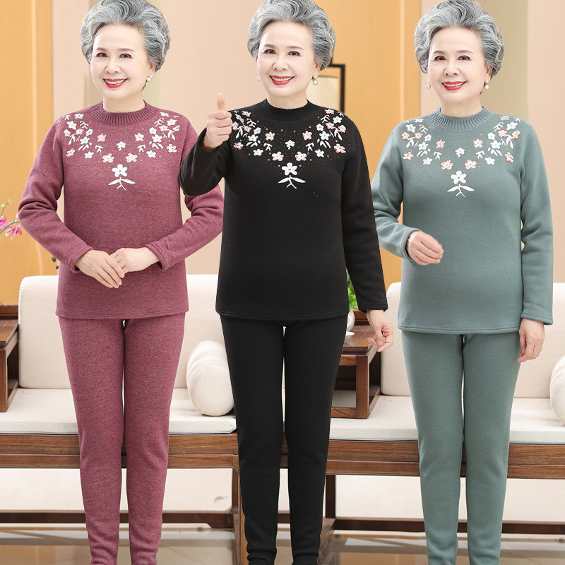 Демисезонное удерживающее тепло нижнее белье, утепленный базовый приятный телу комплект для пожилых людей для матери, для среднего возраста