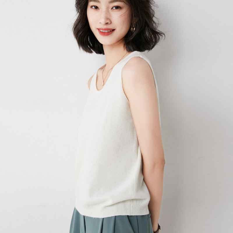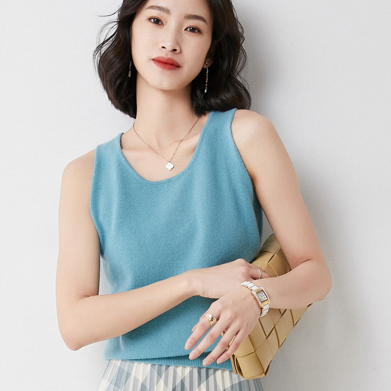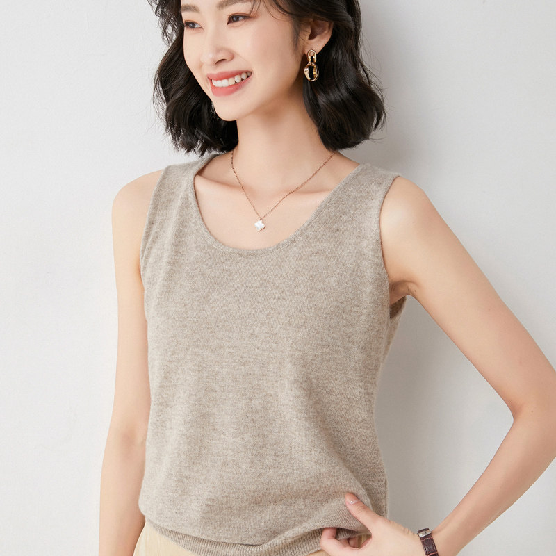 Шерстяная майка топ, трикотажный кашемировый свитер с круглым воротником, большой размер, облегающий крой, эффект подтяжки