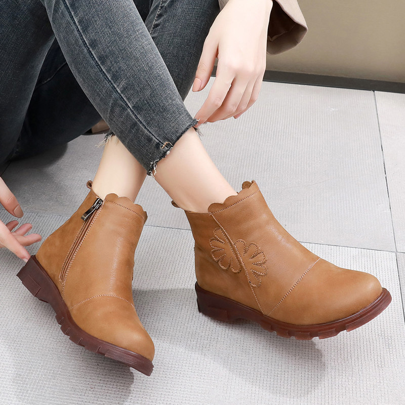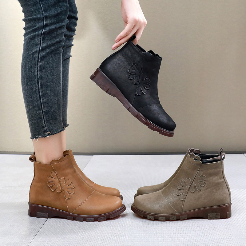 Весенние короткие сапоги, ботинки для матери на платформе, коллекция 2022, из натуральной кожи, мягкая подошва