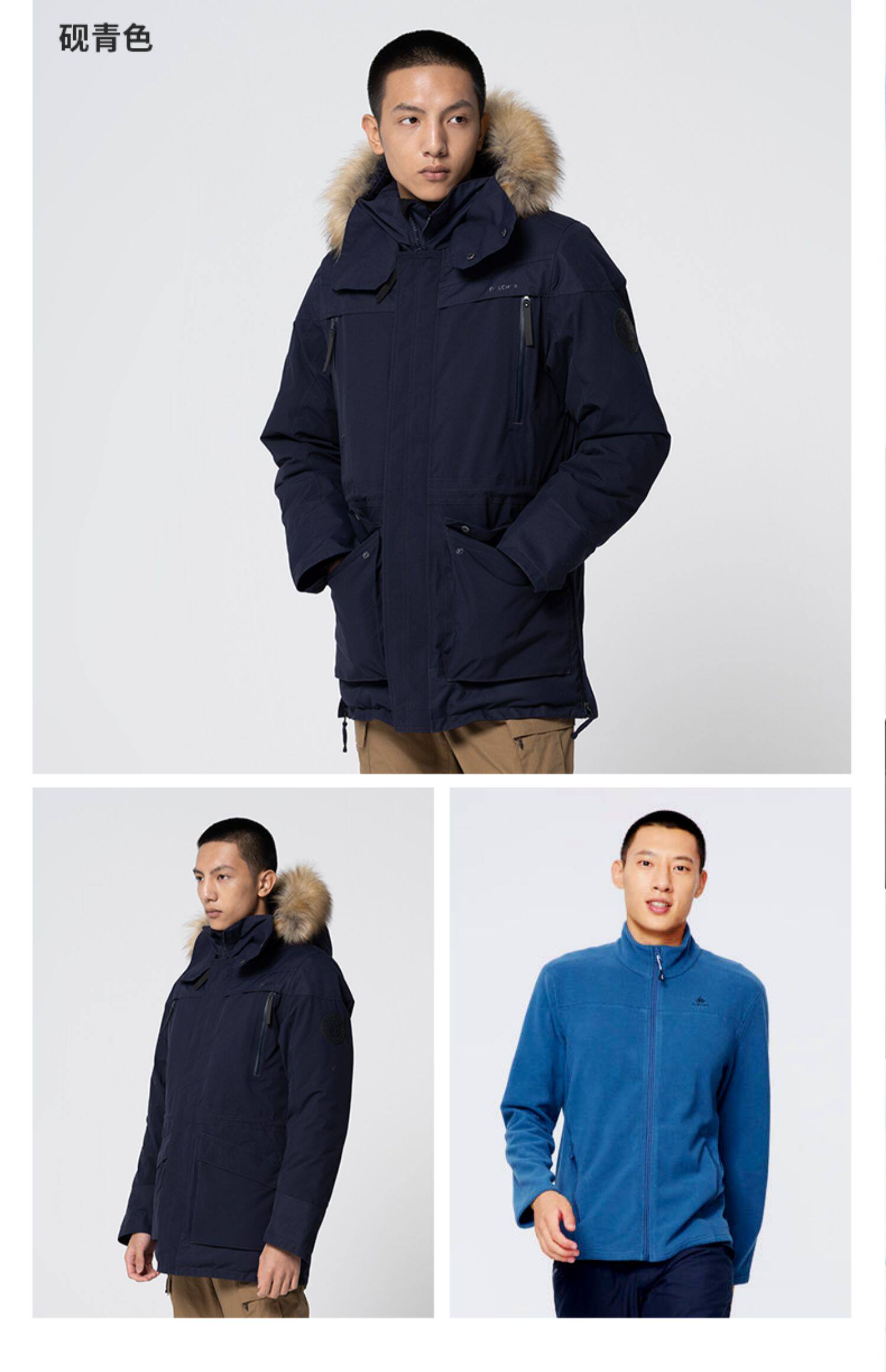 - [Мужчина] 色 Голубая хлопчатобумажная одежда+темно -синий измельченный бархат