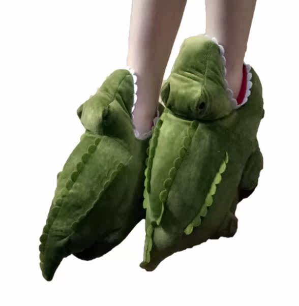 Забавные мультяшные милые плюшевые тапочки, удерживающая тепло нескользящая акула подходит для мужчин и женщин, крокодил