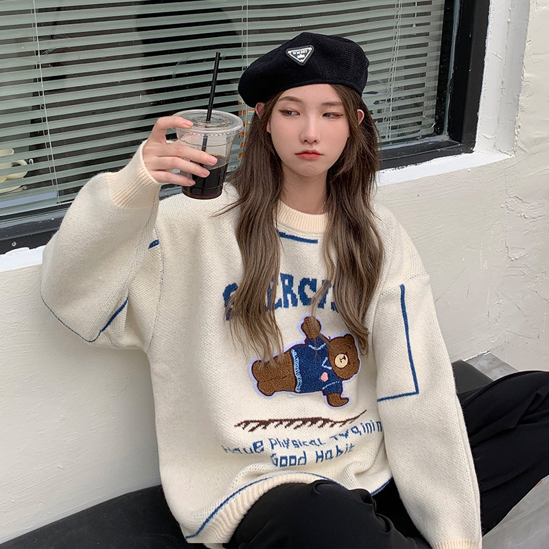 Осенний демисезонный зимний японский дизайнерский свитер, большой размер, с медвежатами, коллекция 2022, тренд сезона