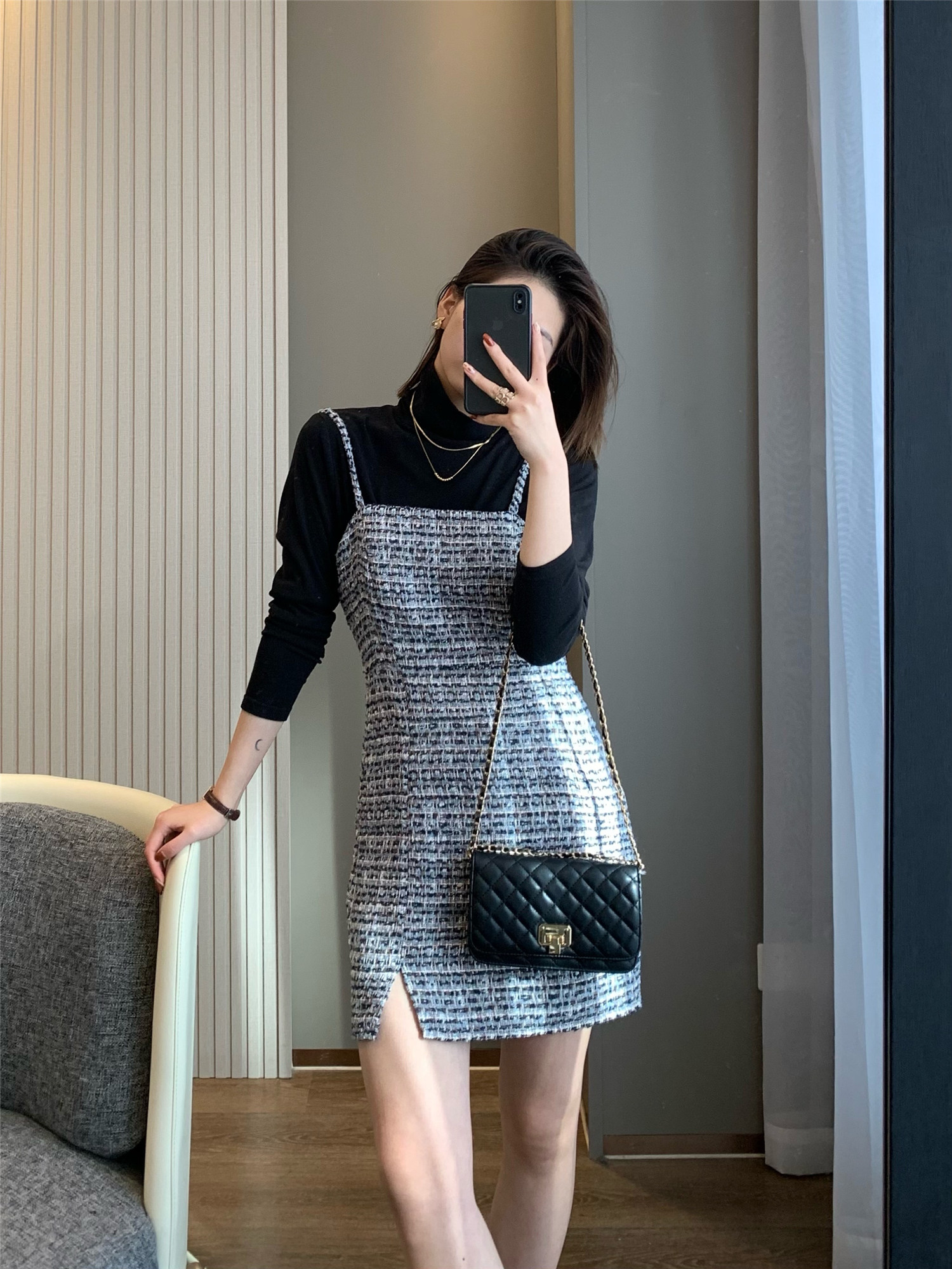 В синем, иду Испания!На шкафу 299 の Осенняя и зимняя новая грубая цветок маленький адапный платье -редакция
