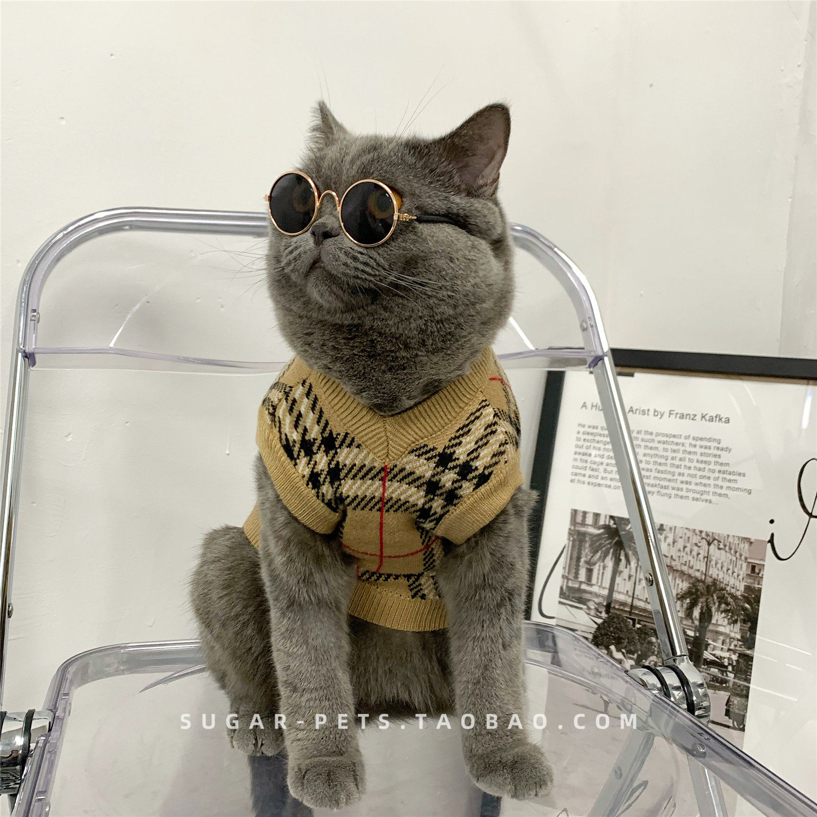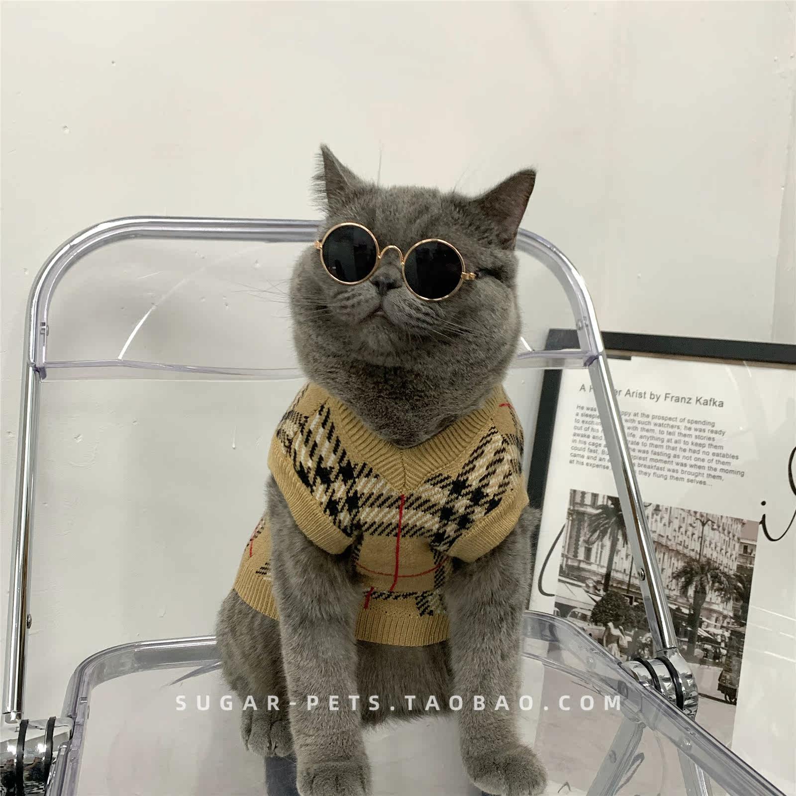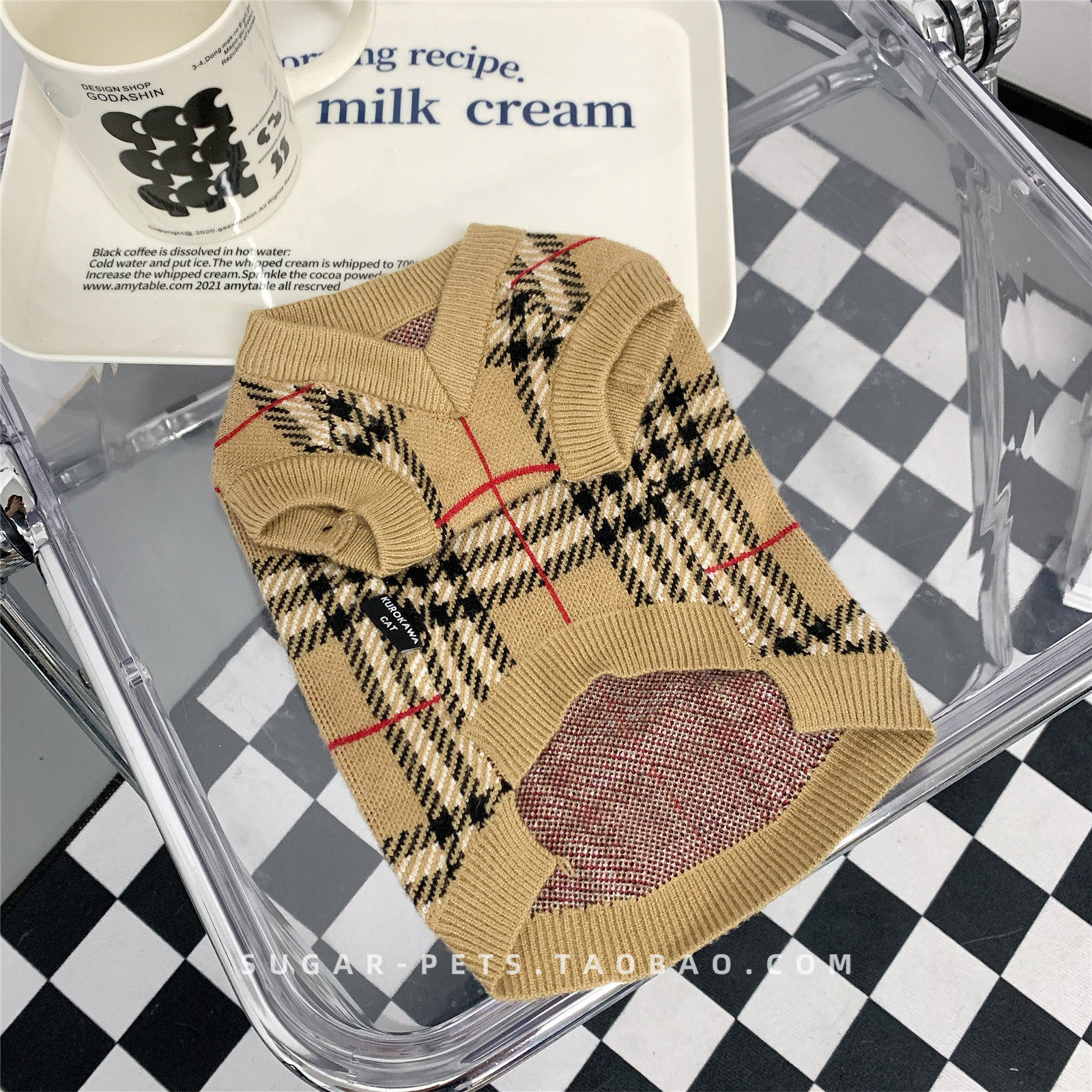 Зимняя домашняя собака и одежда для кошек в зимнем британском короткометражном приливе, зимней одежде, без рукавов и с низким клетчатым свитером.