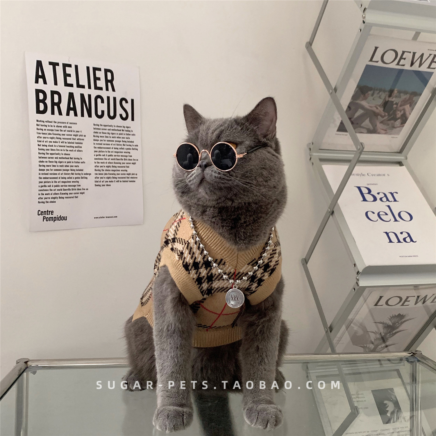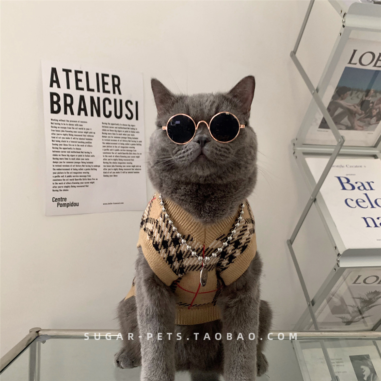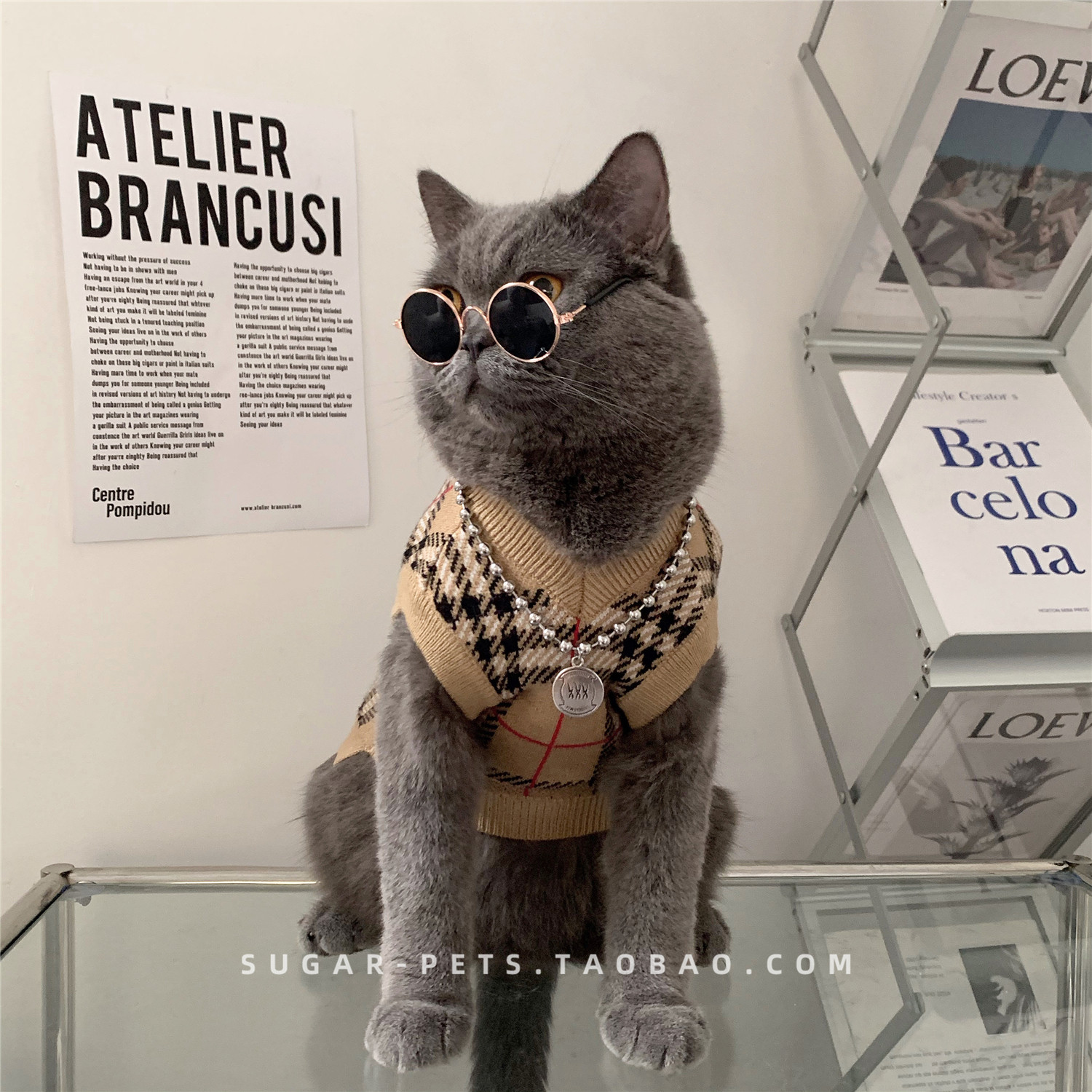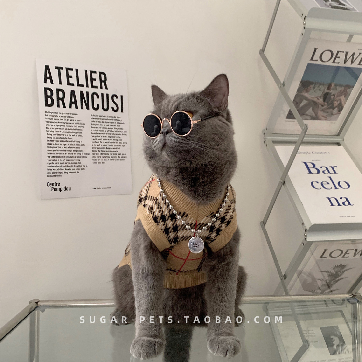 Зимняя домашняя собака и одежда для кошек в зимнем британском короткометражном приливе, зимней одежде, без рукавов и с низким клетчатым свитером.