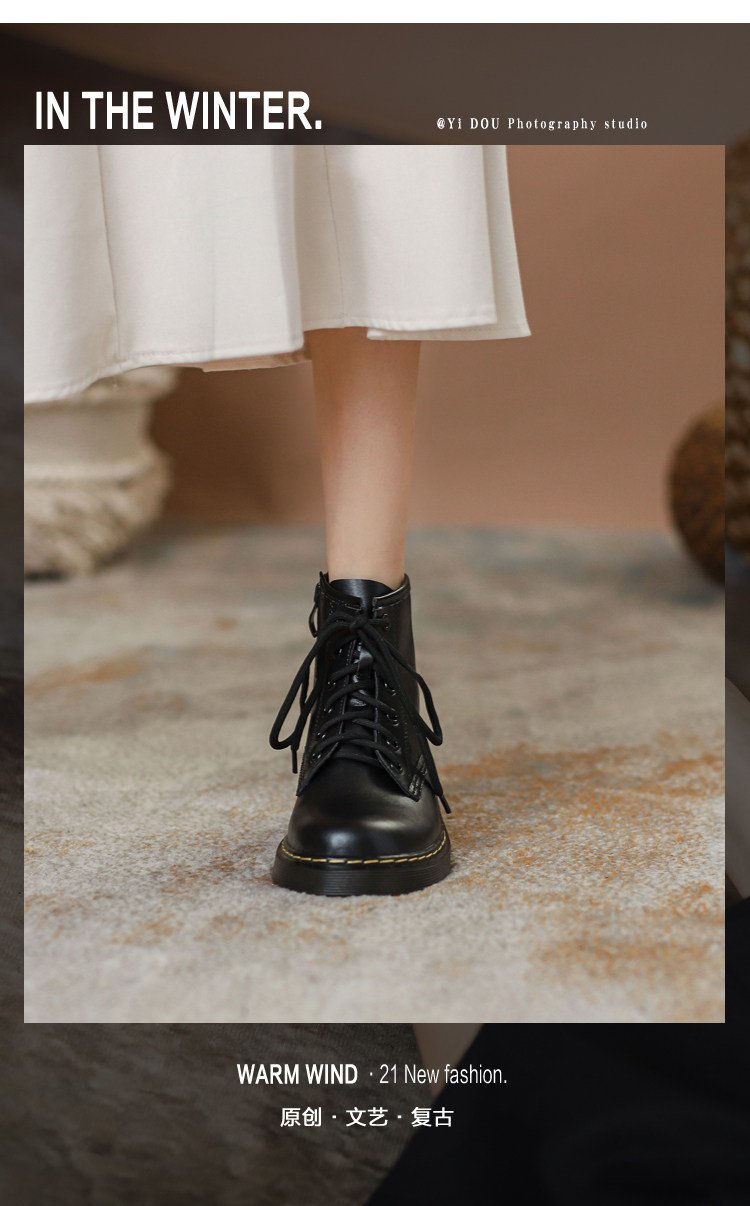 Martens, Tide, короткие сапоги в английском стиле, утепленные ботинки на платформе, из натуральной кожи, коллекция 2023, в британском стиле