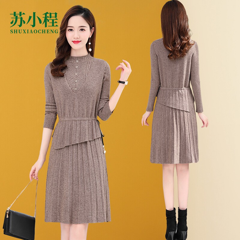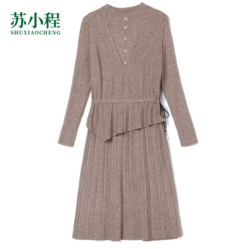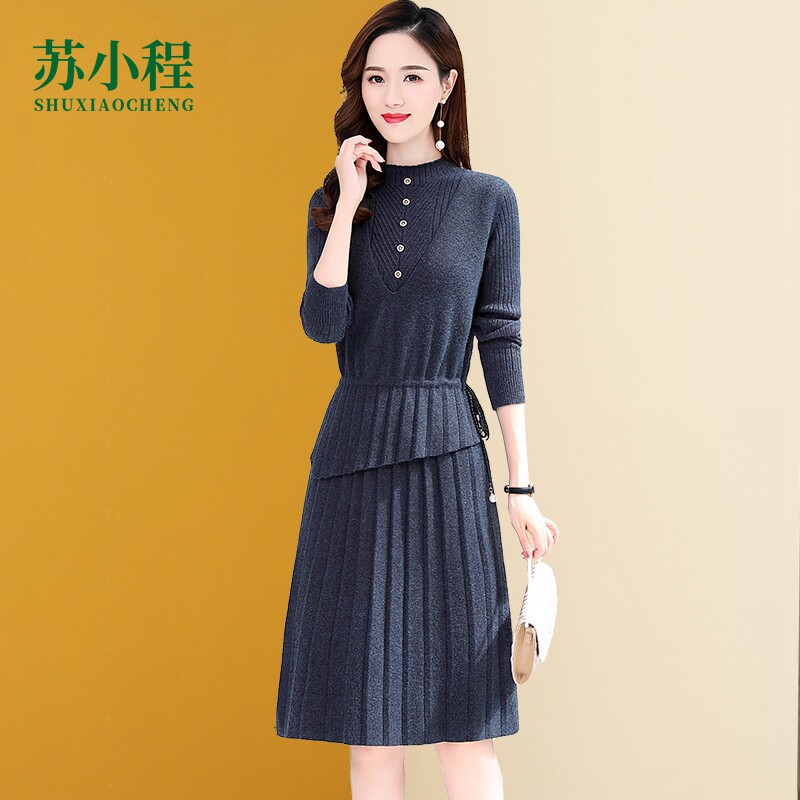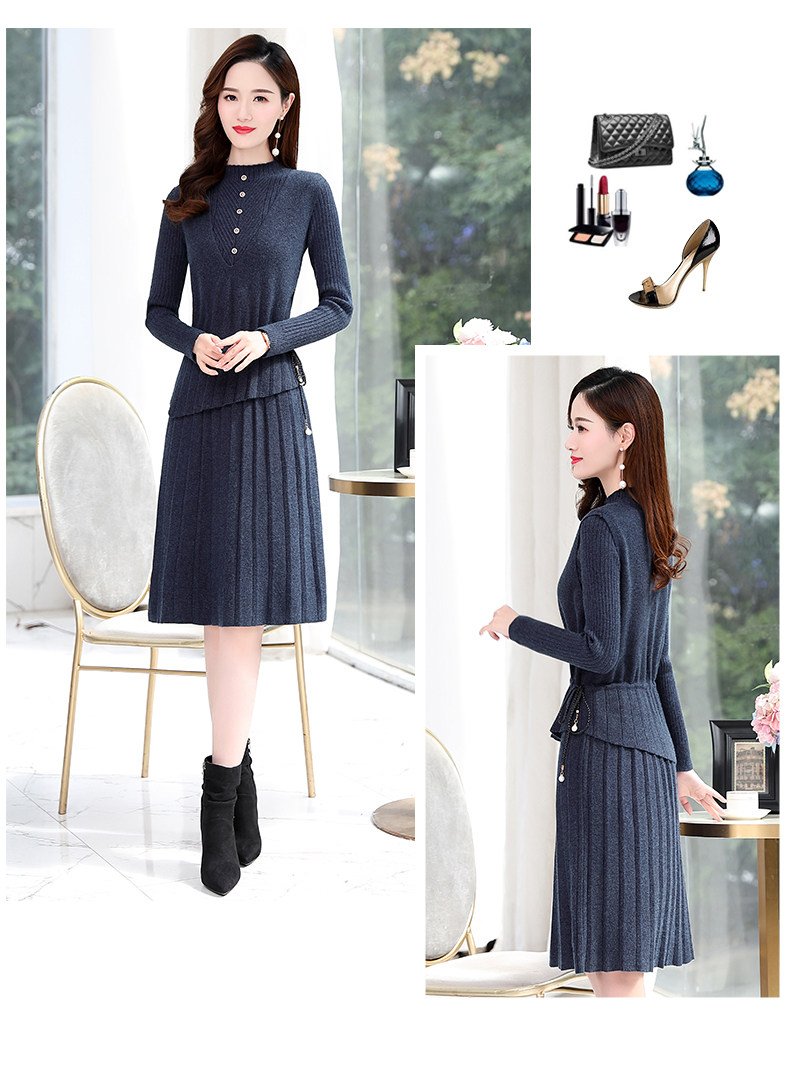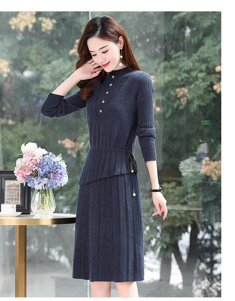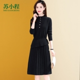 Трикотажный весенний свитер, комплект, элитное базовое платье, юбка, коллекция 2022, в западном стиле