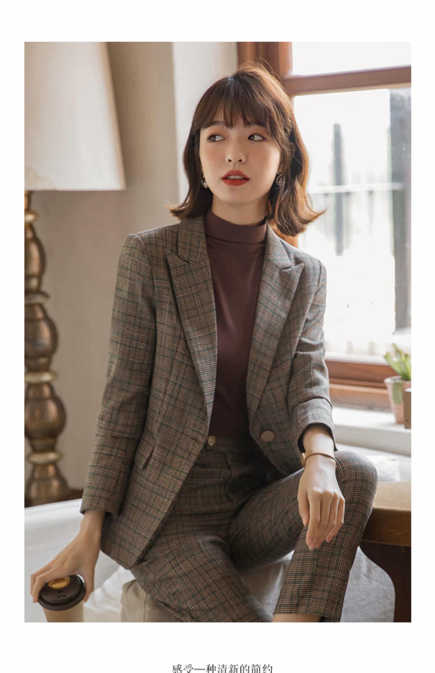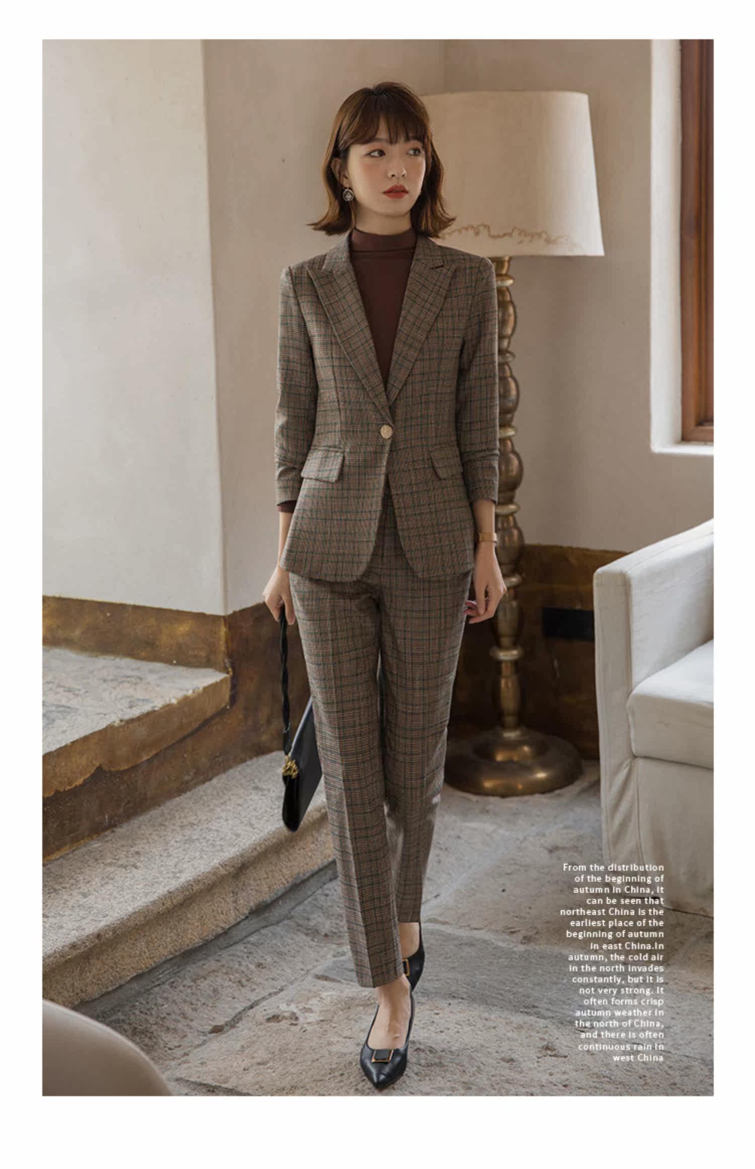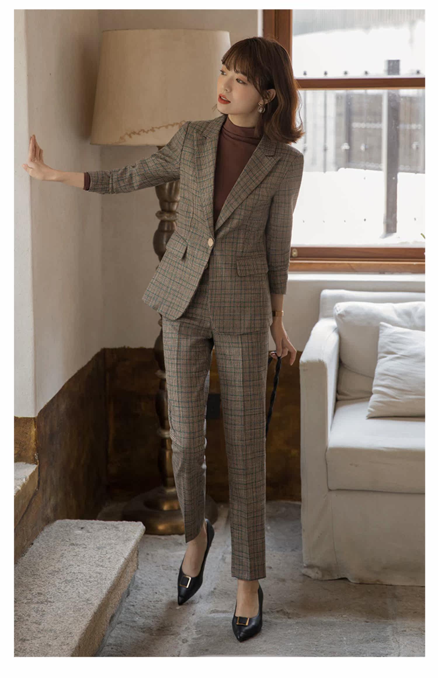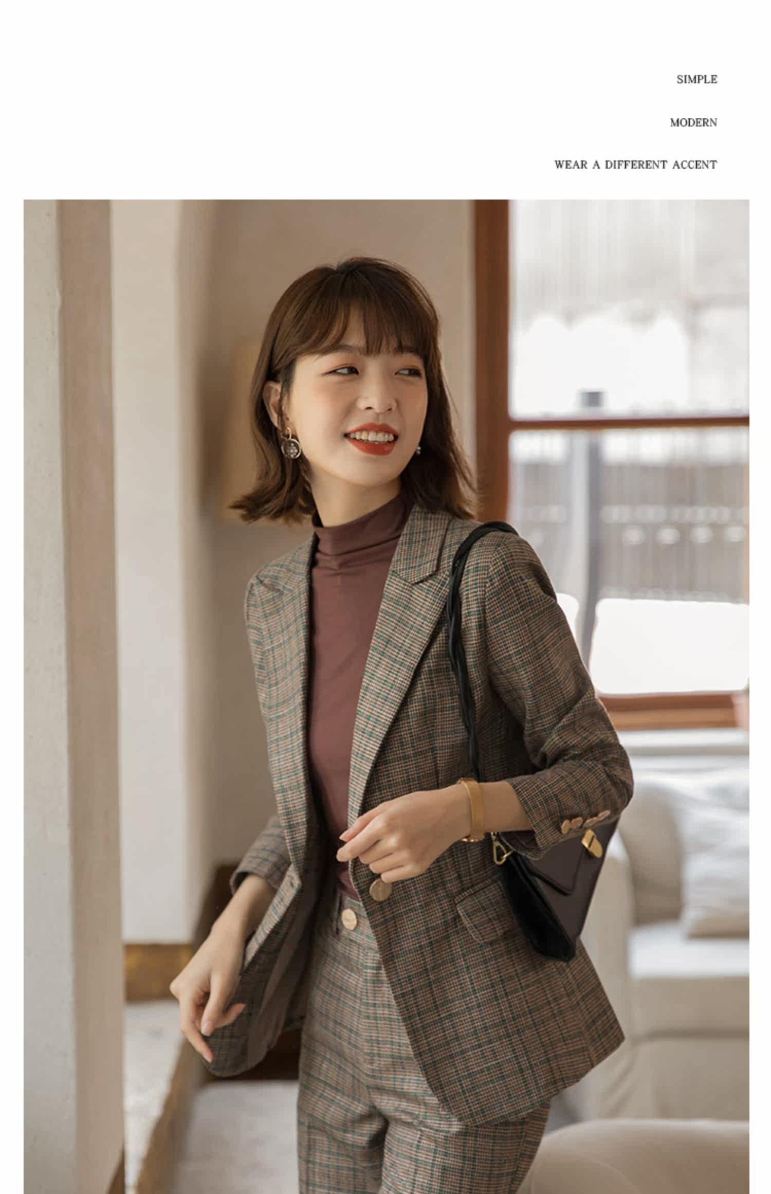 | Цвет: | Цветной костюм, штаны, Коричневый костюм в ломаную клетку + брюки + коричневый топ, Кофейный костюм птиц птиц |