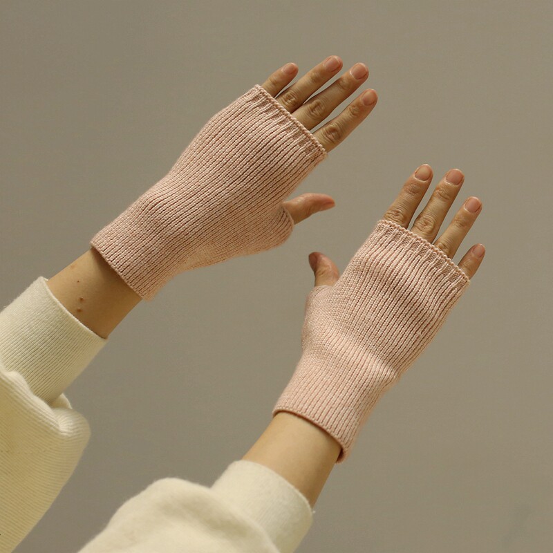 Демисезонные эластичные трикотажные ретро белые зимние удерживающие тепло перчатки, без пальцев, в корейском стиле