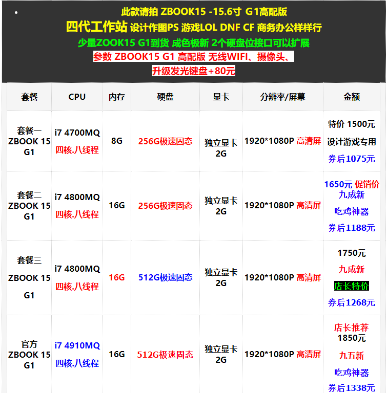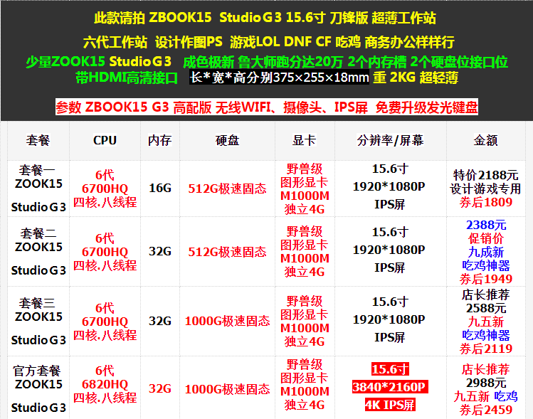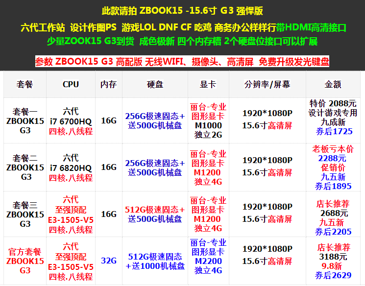 Четырехгенерационная рабочая станцияDesign PS Game LOL DNF CF Business Office образец Небольшое количество Zook15 G1 для товаров чрезвычайно новое 2 интерфейсы положения жесткого диска могут быть расширены Параметр ZBook15 G1 High -Fend Wireless WiFi,Камера Модернизированная световая клавиатура+80 Юань | ||||||||