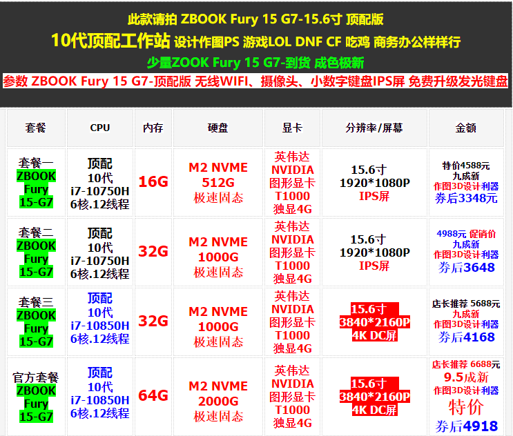 Пакет а ZBOOK15 G6 | Вершина основной-9 -е поколение i7-9750H 6 ядра .12 потока | 8G | M2 NVME 256G Скорость твердое | Нвидия NVIDIA Графическая графическая карта T1000 Независимый 4G | 15,6 дюйма 1920*1080P Экран IPS | Специальная цена 3288 юаней 90 % новый Рисунок 3D дизайнОружие 2388 юаней после купона | ||