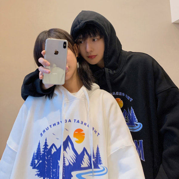 Белая осенняя толстовка с капюшоном для влюбленных, куртка для школьников, оверсайз, коллекция 2022
