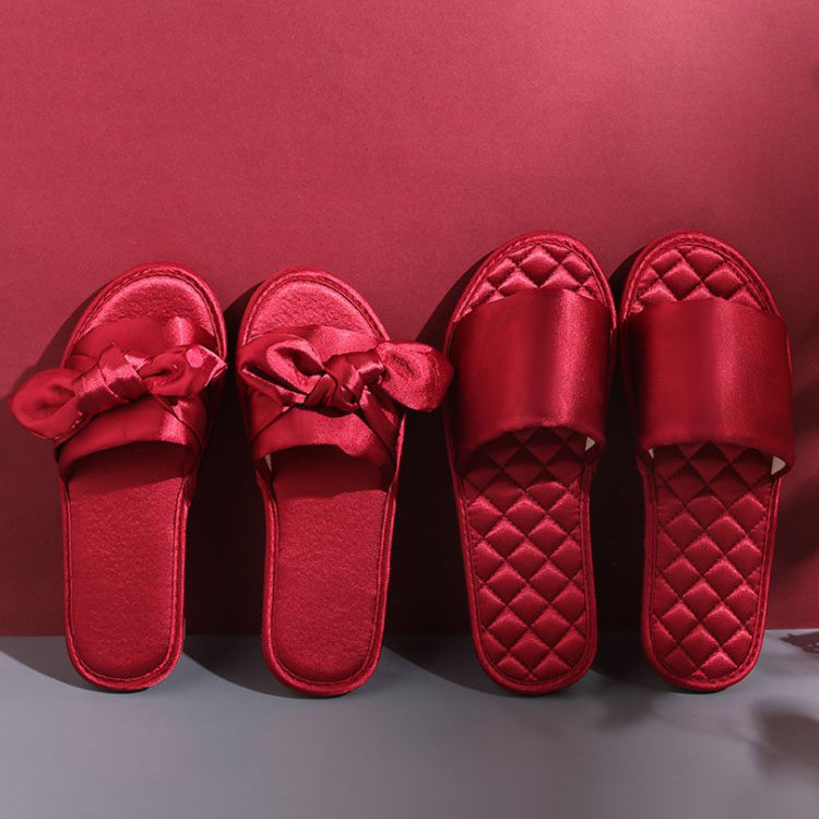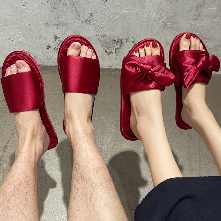 Праздничнные демисезонные красные летние тапочки подходит для мужчин и женщин с бантиком, для влюбленных