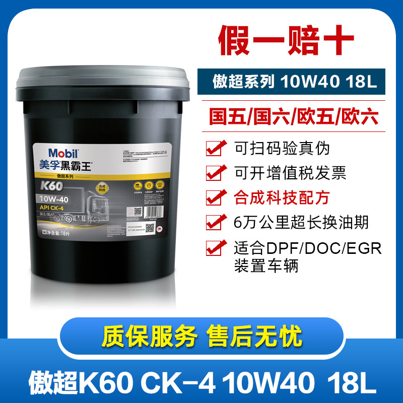 Подлинный Mobil Heibawang Aochao K60 CK-4 10W-40 National VI DPF Синтетическая дизельная смазка дизельного масла 18L