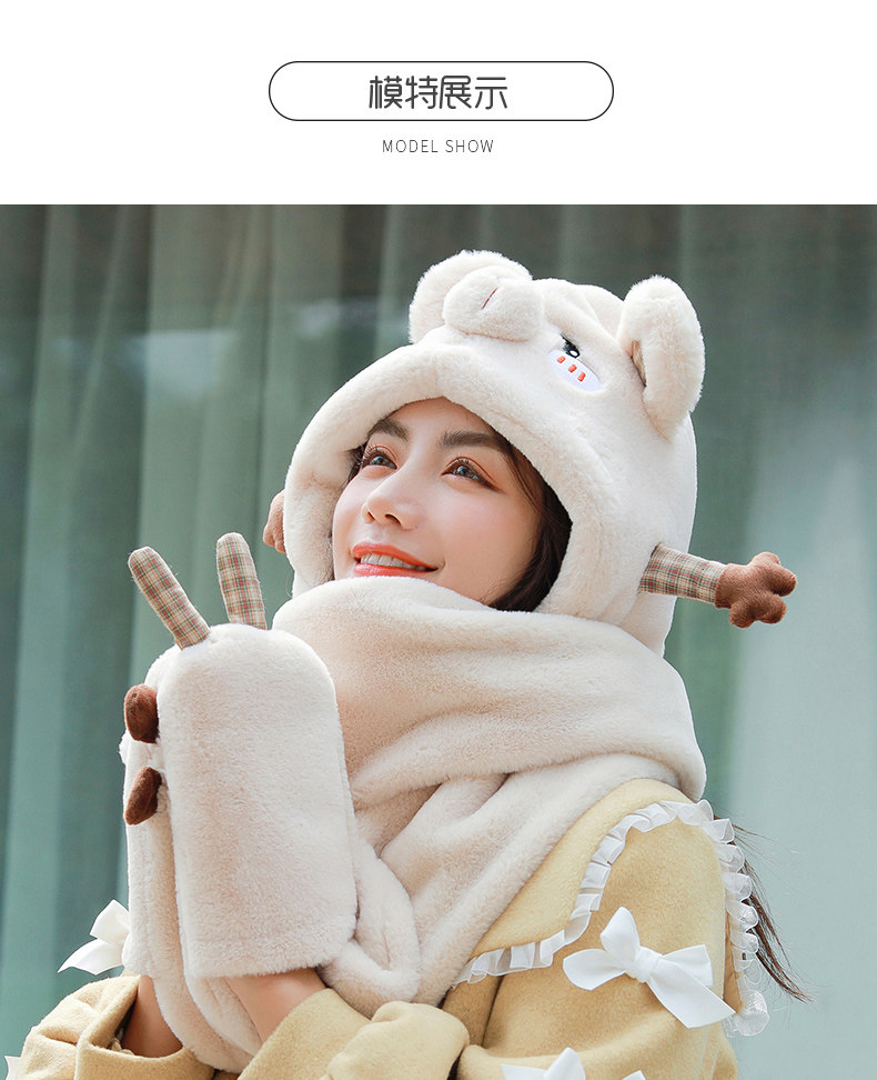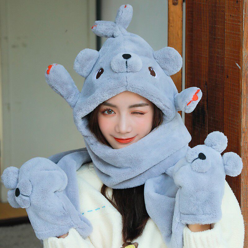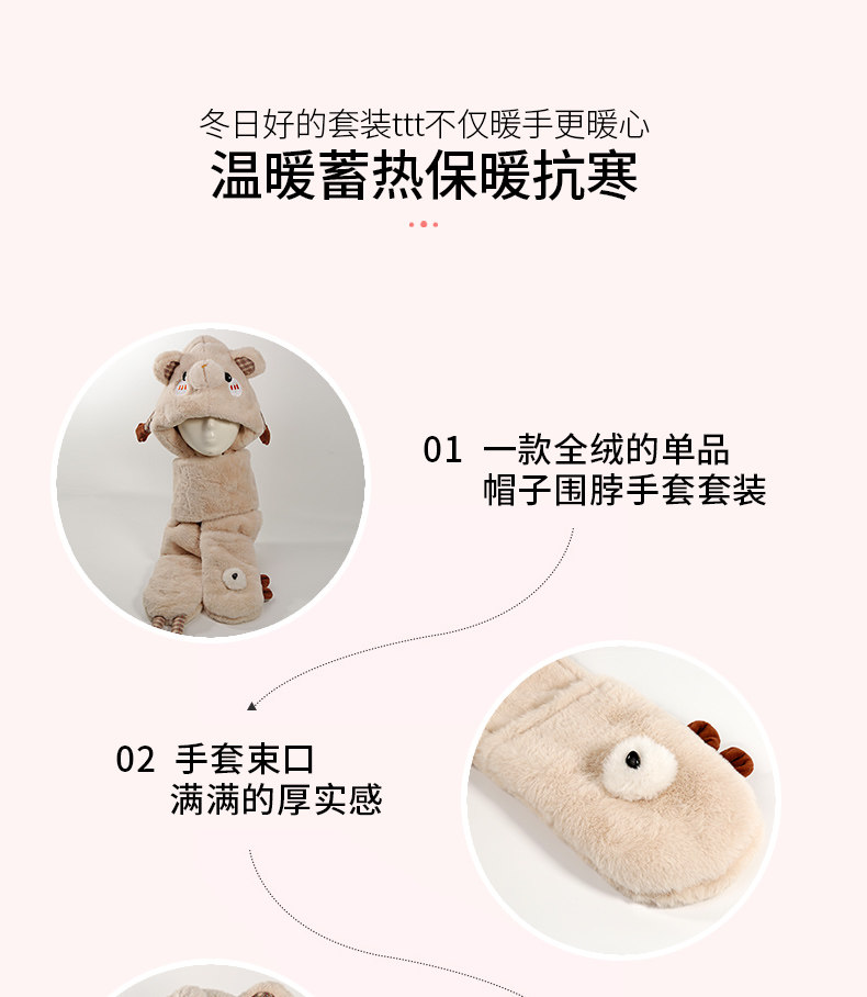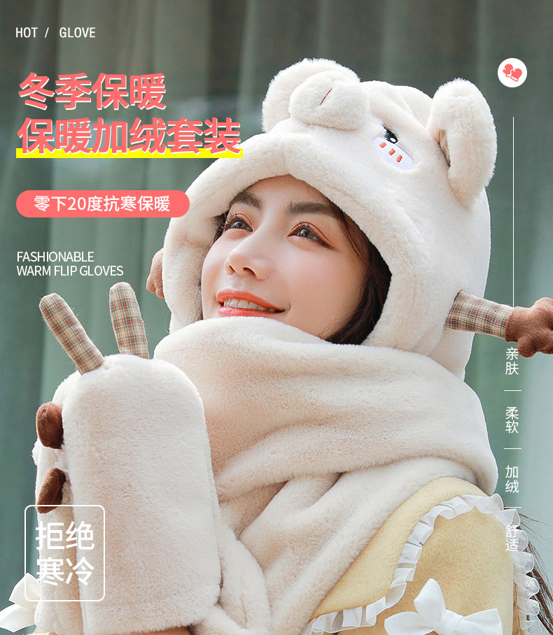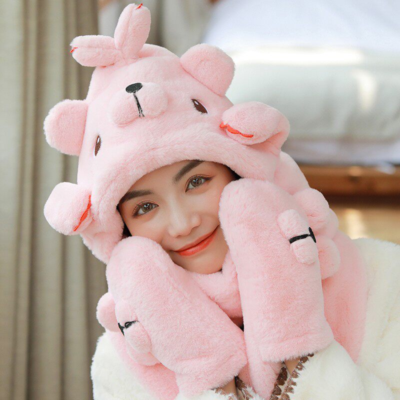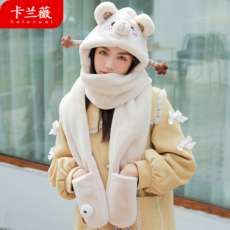 Демисезонная дорожная ветрозащитная удерживающая тепло шапка, милый трикотажный шарф, перчатки, комплект, в корейском стиле, популярно в интернете, 3 предмета