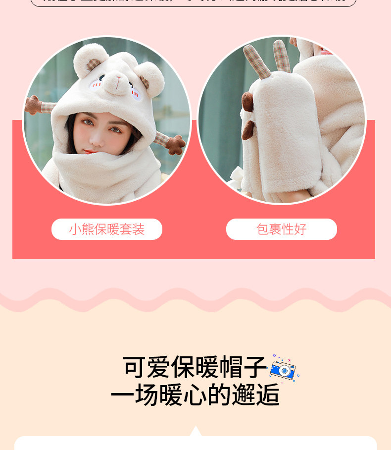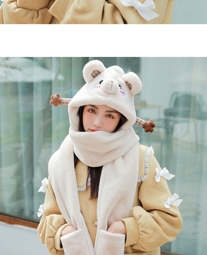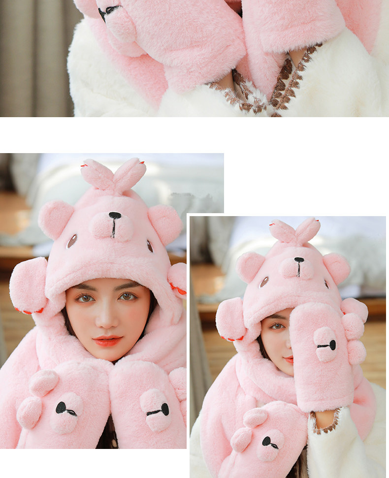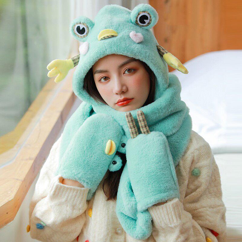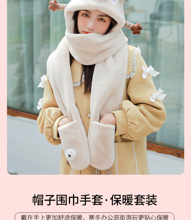 Демисезонная дорожная ветрозащитная удерживающая тепло шапка, милый трикотажный шарф, перчатки, комплект, в корейском стиле, популярно в интернете, 3 предмета
