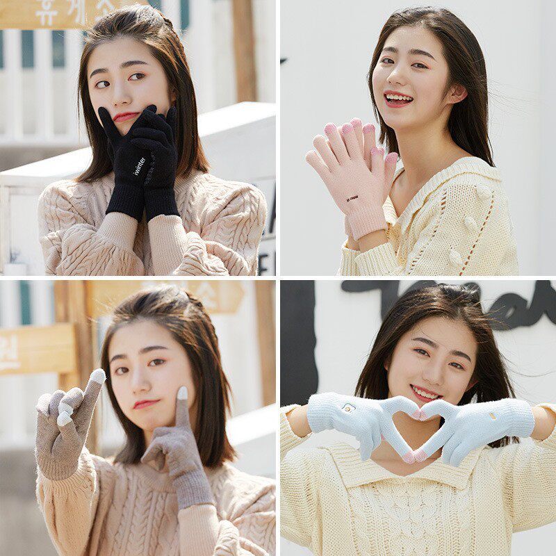 Трикотажные зимние удерживающие тепло мультяшные утепленные ветрозащитные перчатки подходит для мужчин и женщин, для влюбленных