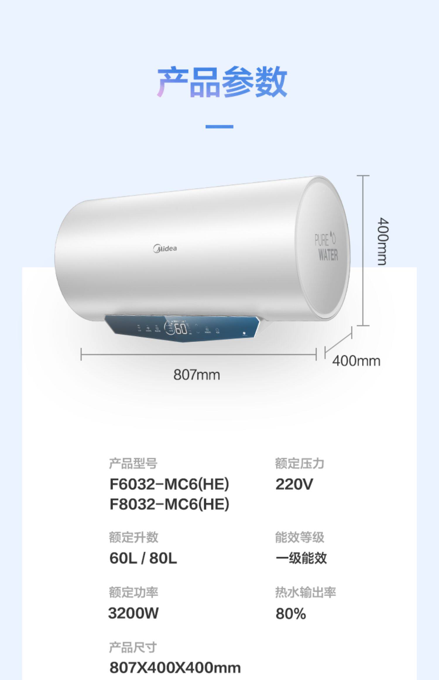 Midea Электрический водонагреватель 3200 Вт магния скорость высокая емкость Домашнее интеллектуальное хранение воды 60/80 л вшами MC6s