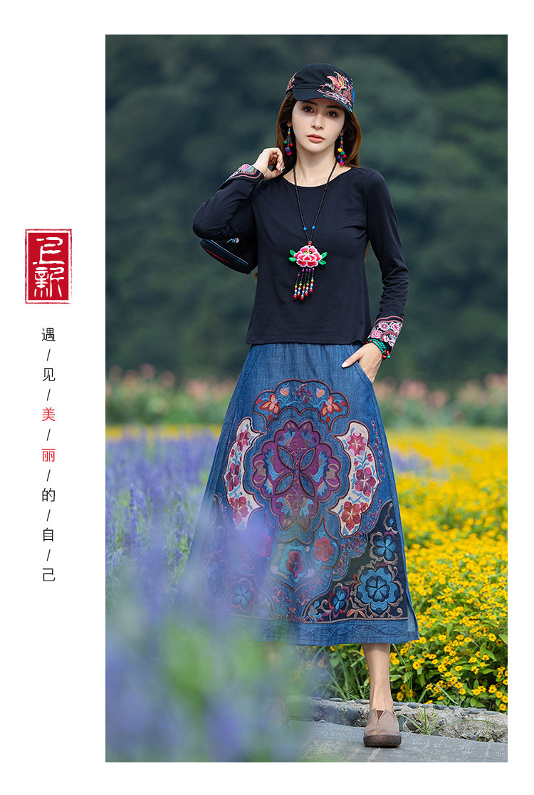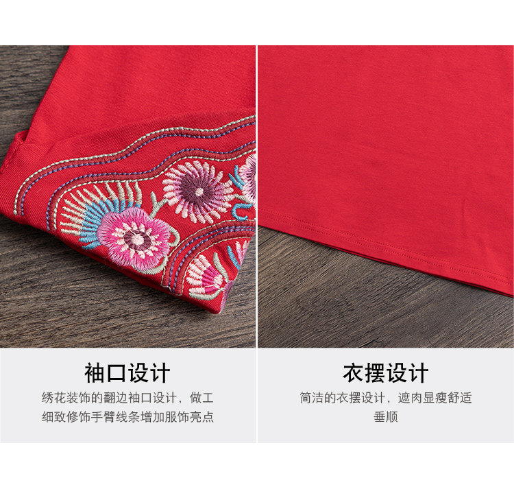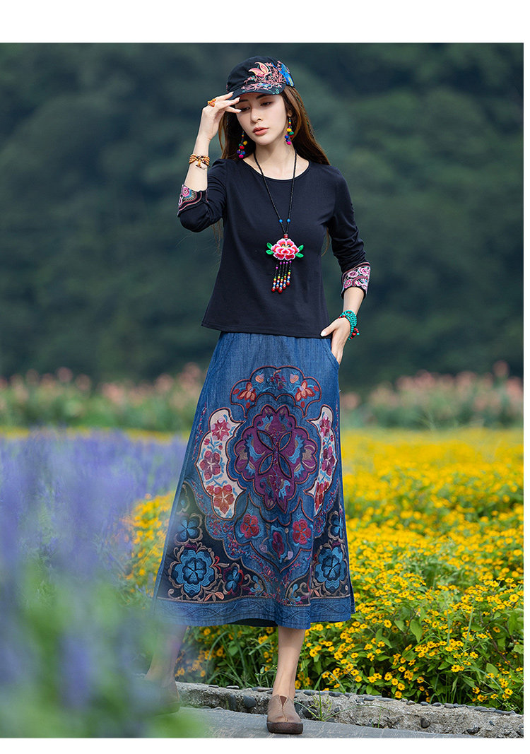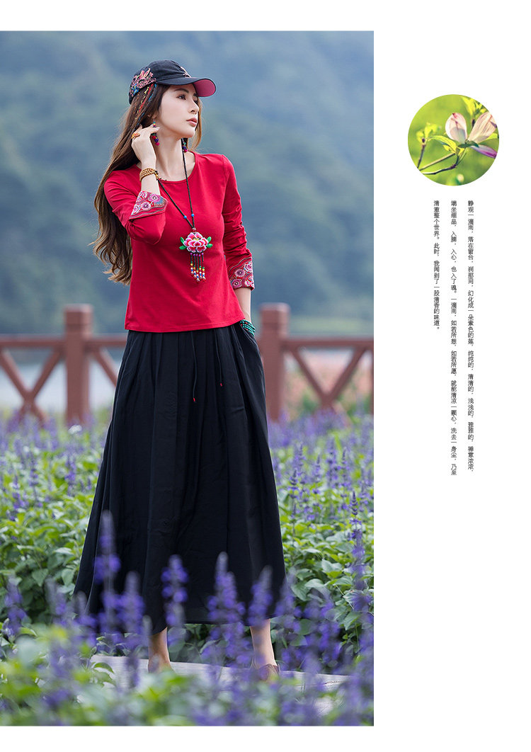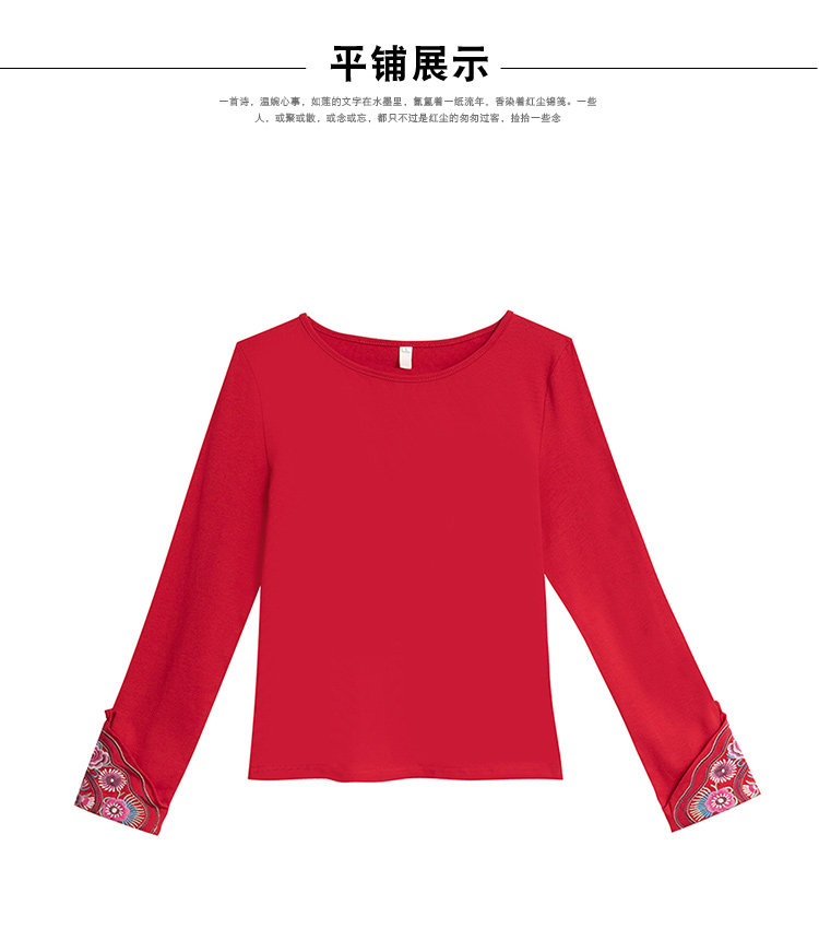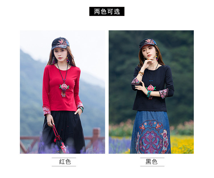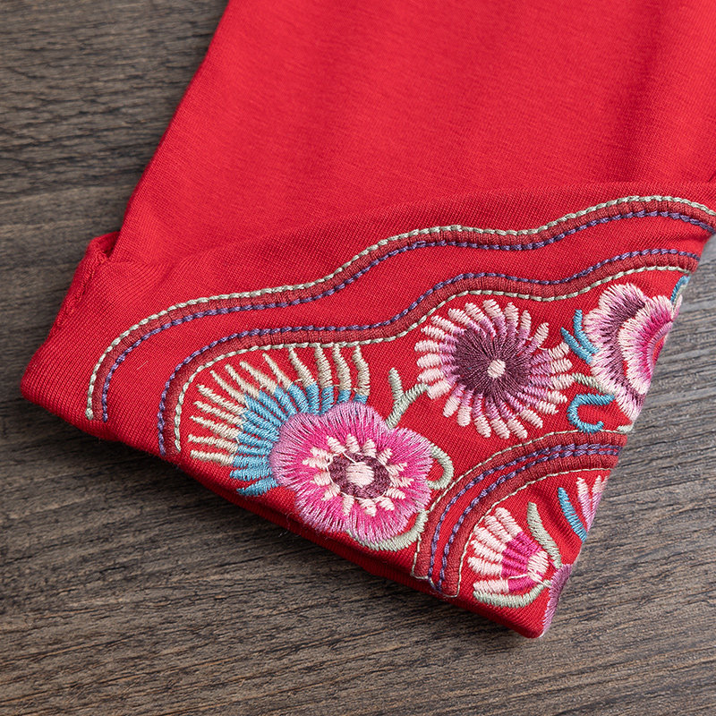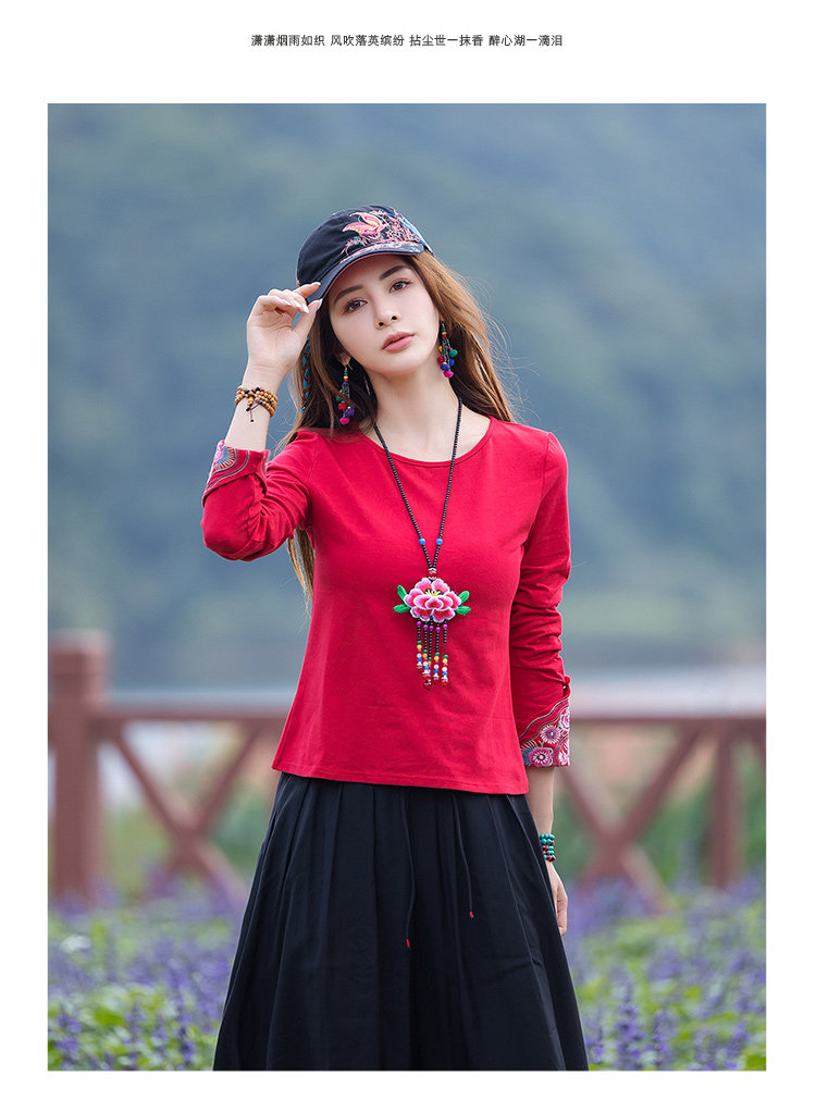 Этнический базовый лонгслив с круглым воротником, хлопковая футболка, 2021 года, городской стиль, этнический стиль, с вышивкой, облегающий крой