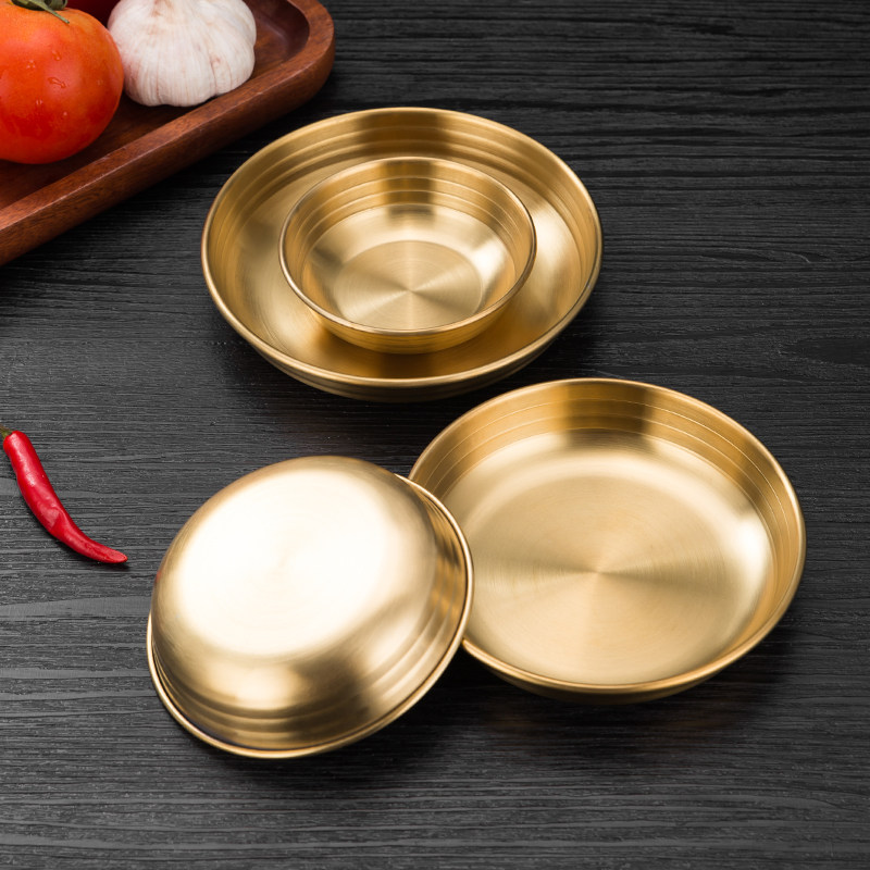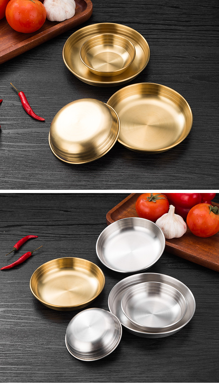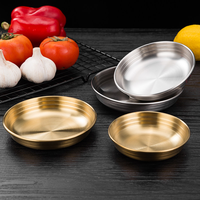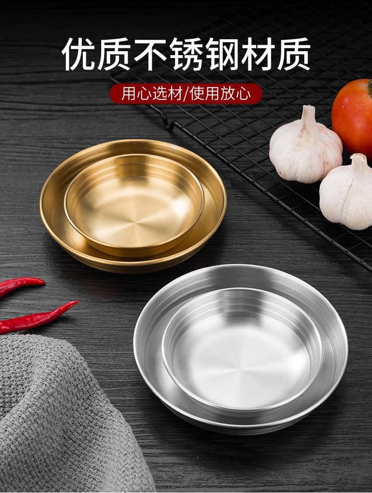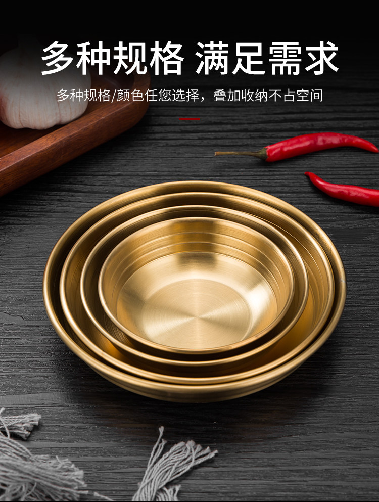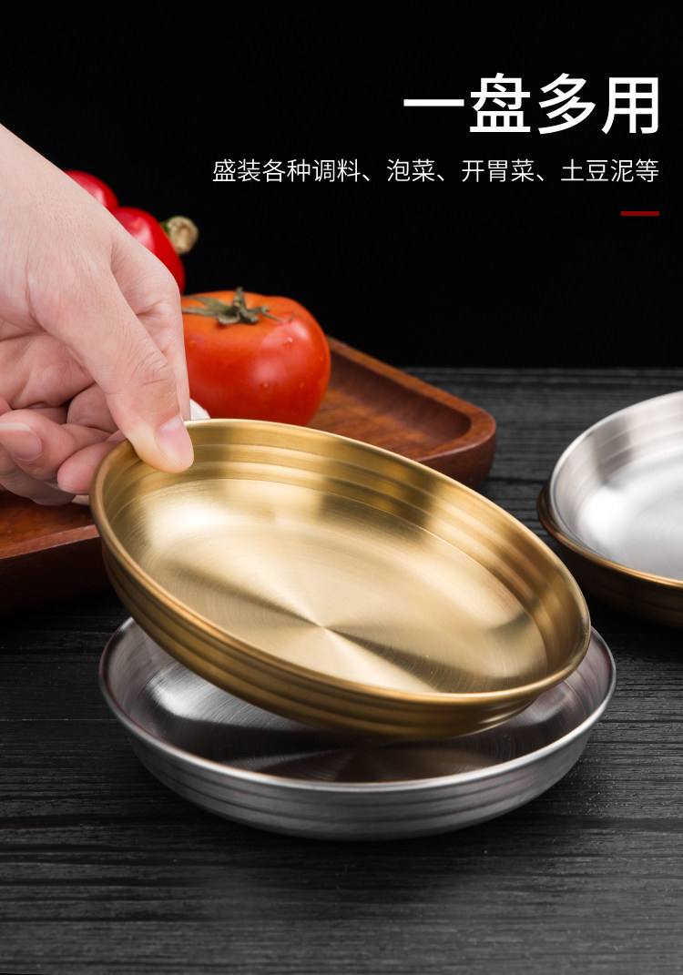 [韩式泡菜碟304不锈钢平底小料碟金色凉菜碟调味碟餐碟烤肉店餐具]