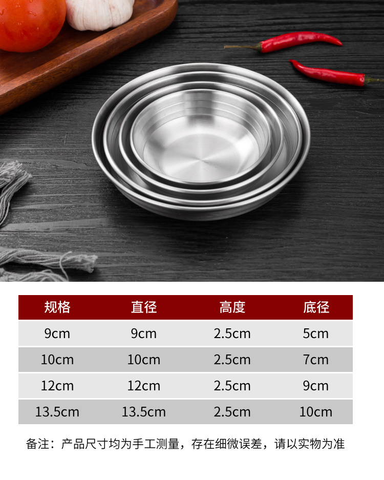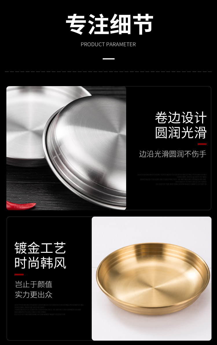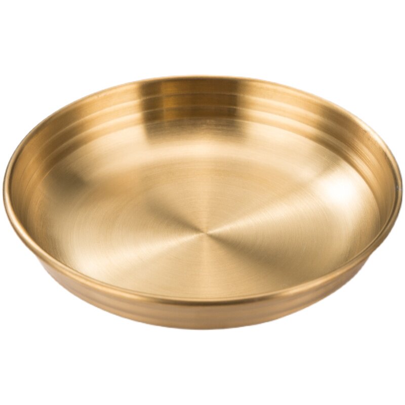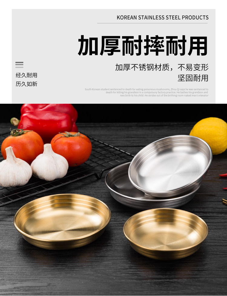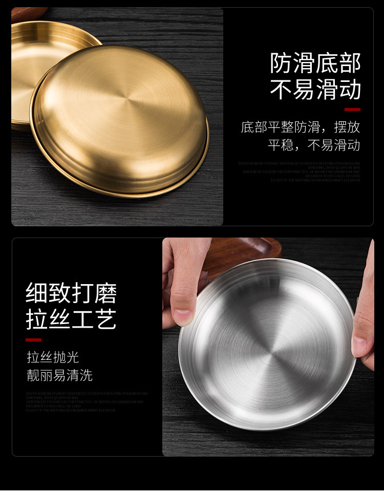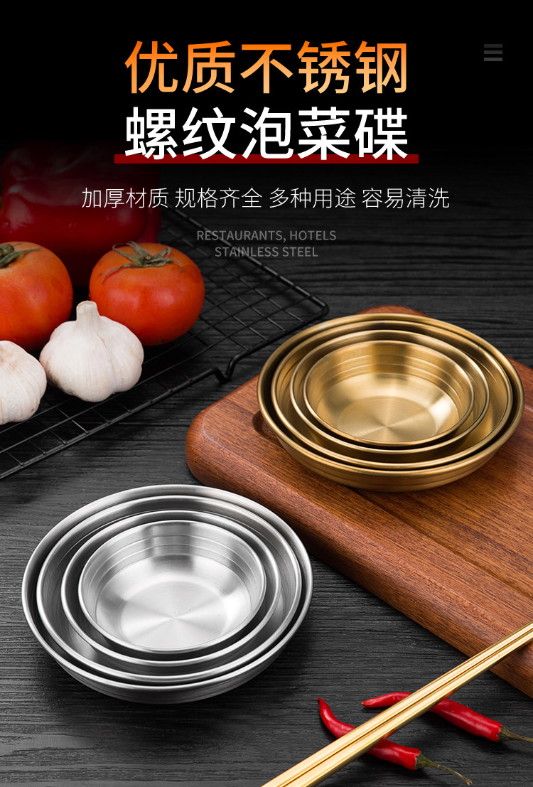 [韩式泡菜碟304不锈钢平底小料碟金色凉菜碟调味碟餐碟烤肉店餐具]