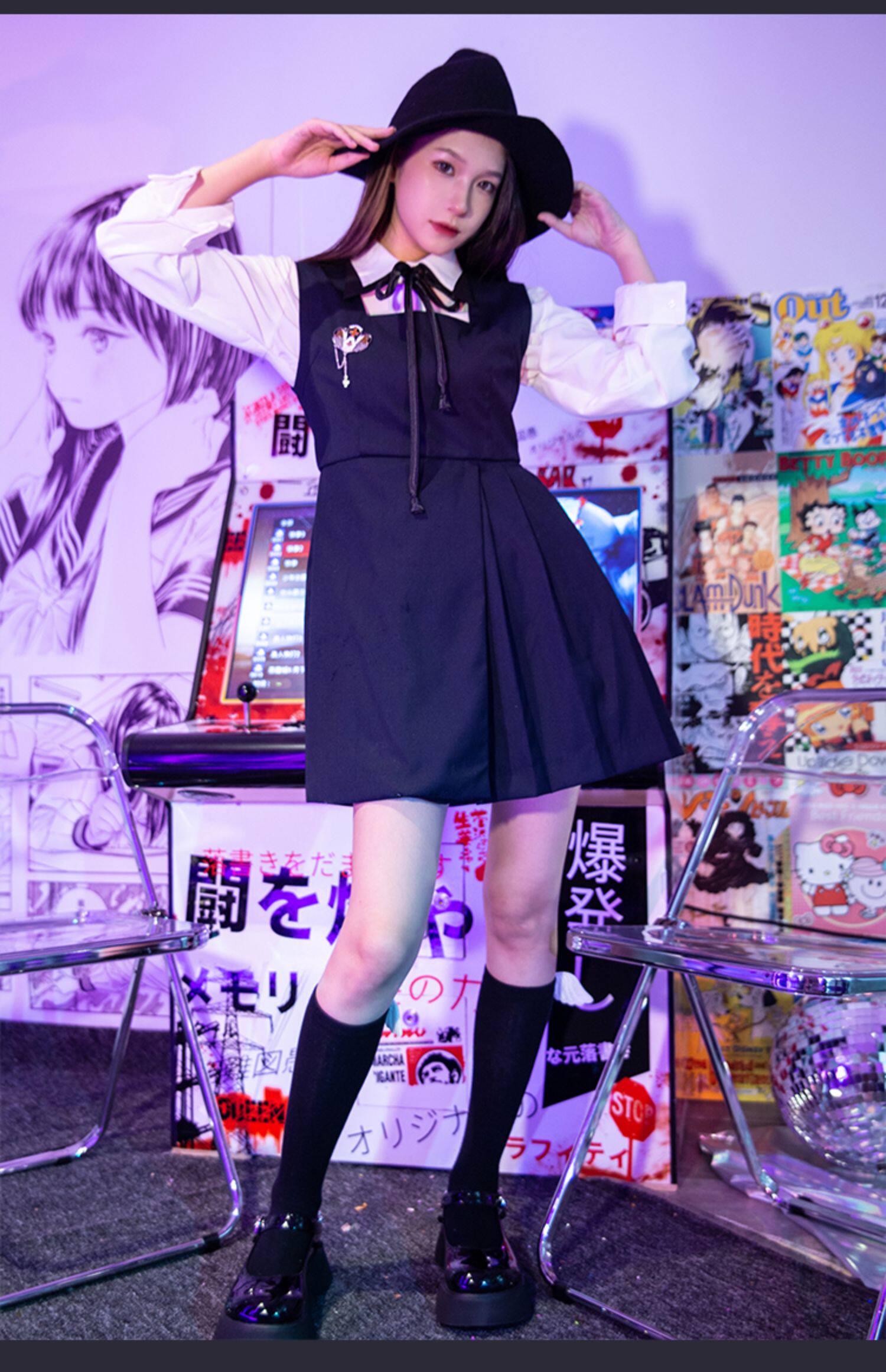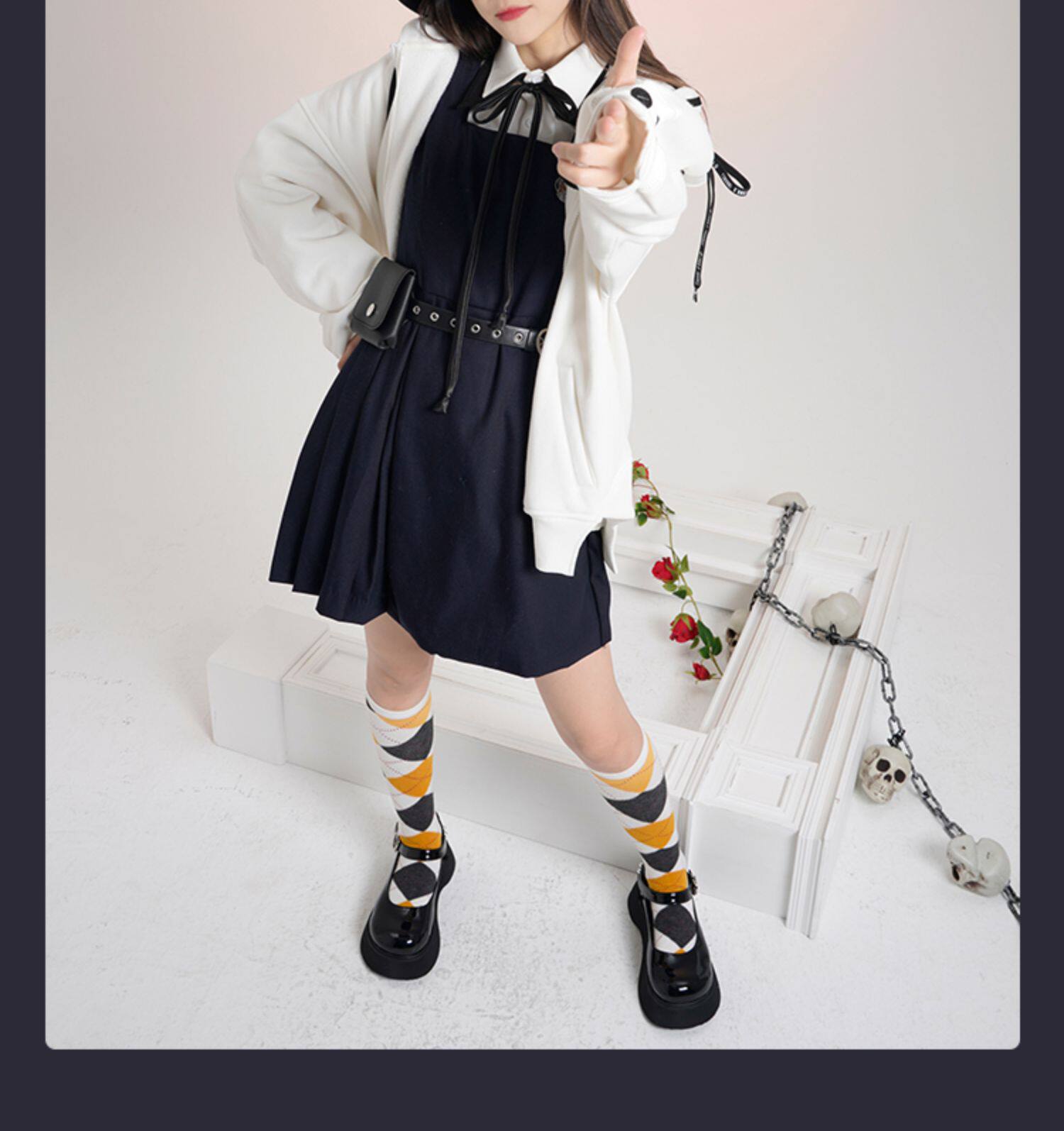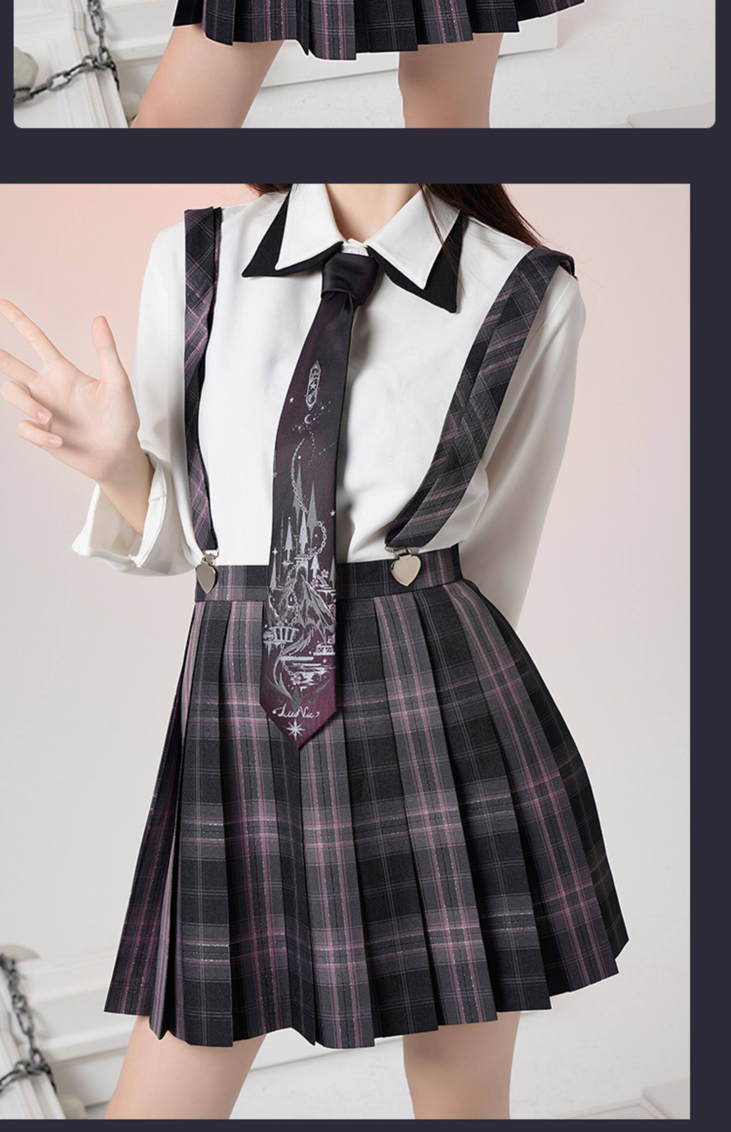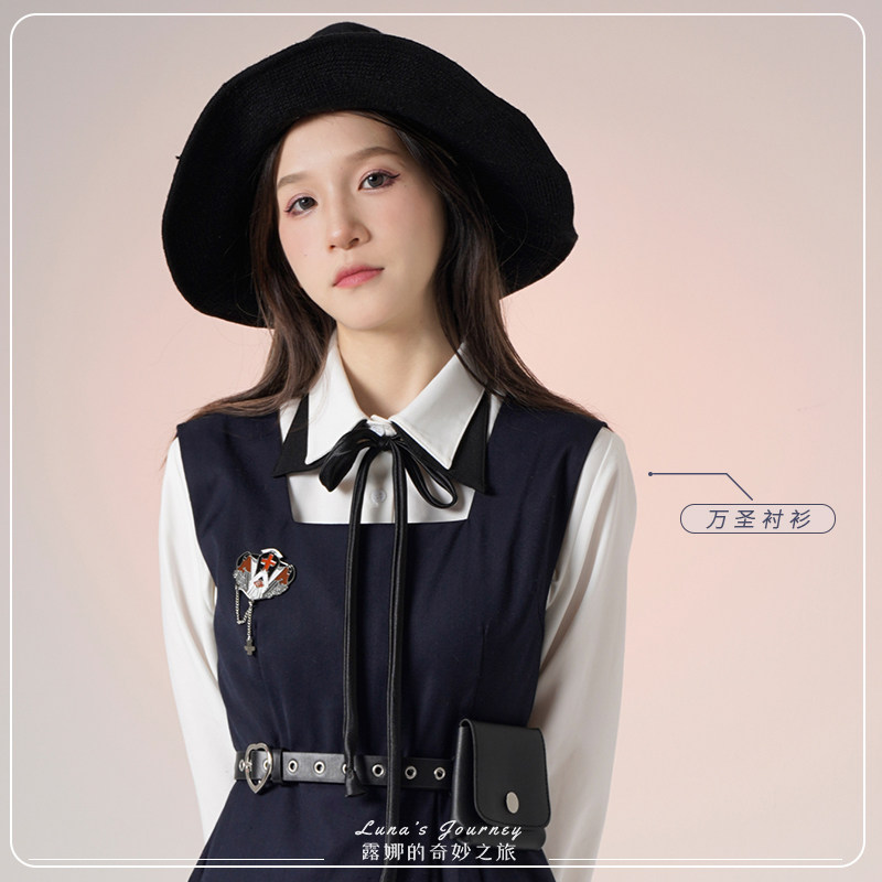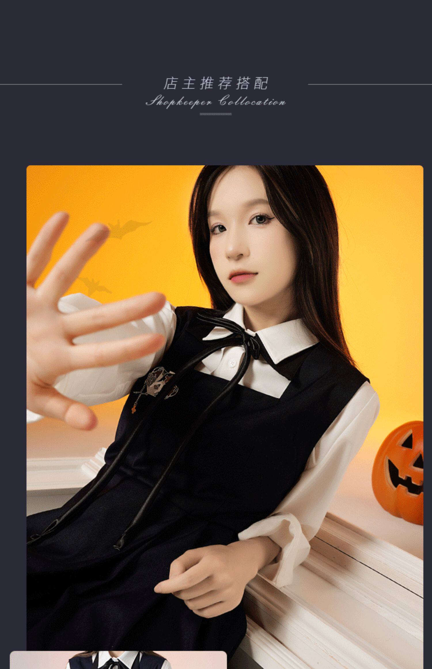 Рубашка, оригинальный осенний лонгслив, студенческая юбка в складку, xэллоуин