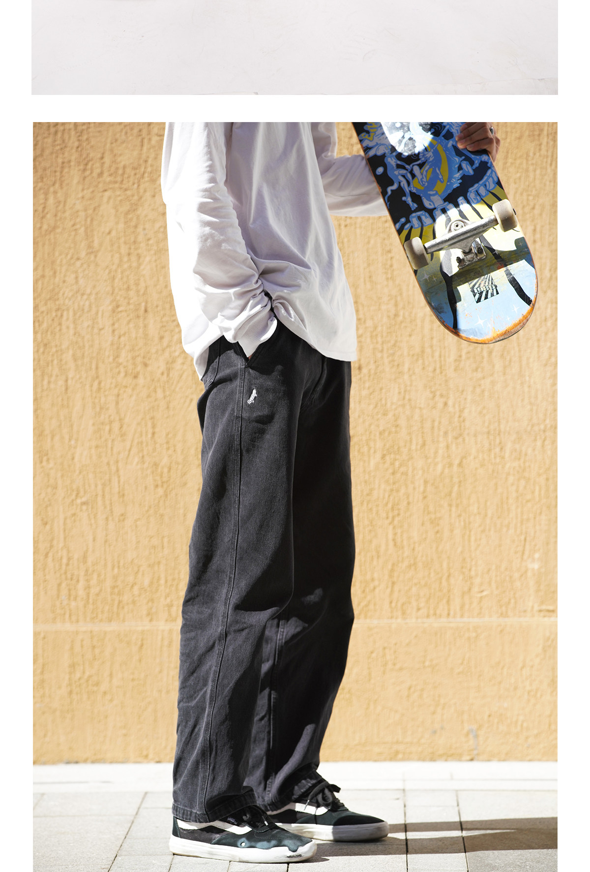 Комфортные джинсы, ретро синие черные штаны, скейтборд, свободный крой