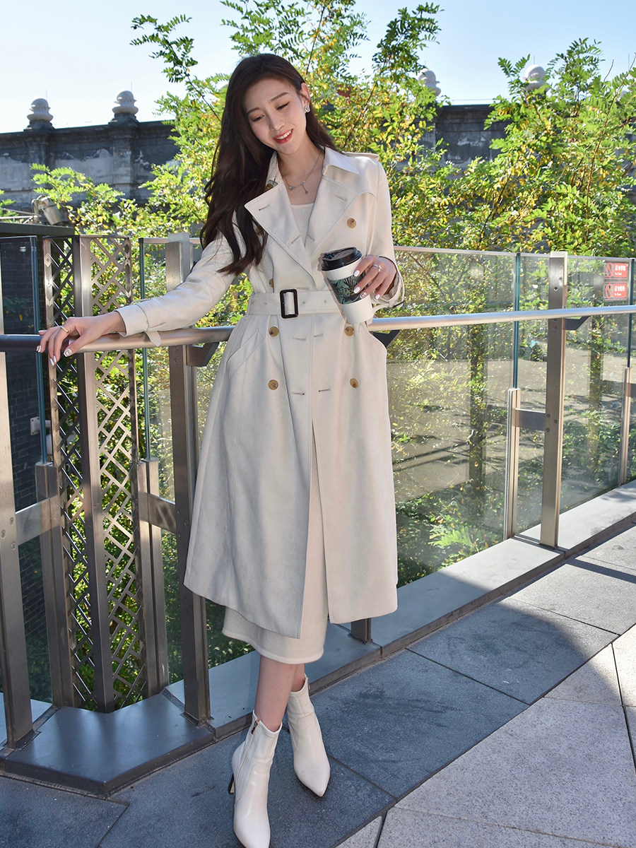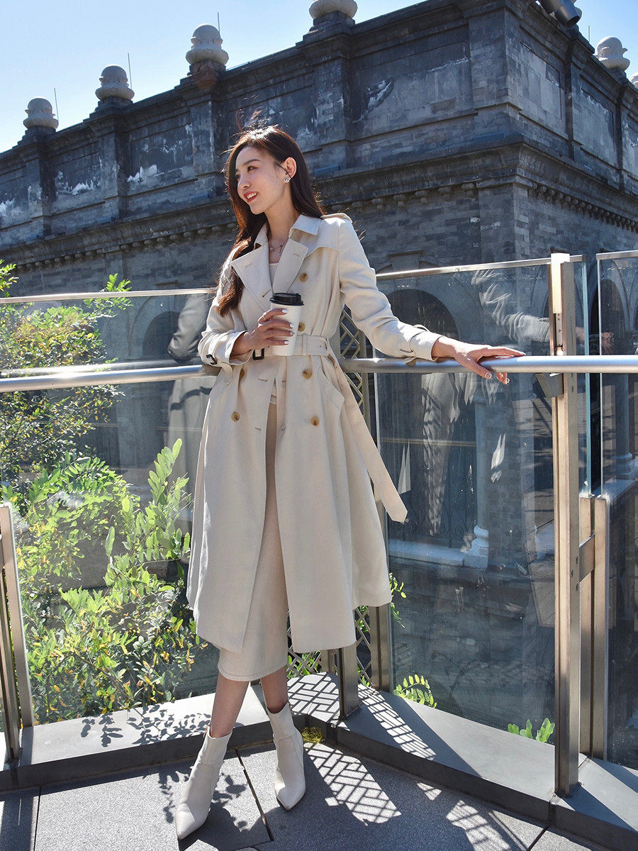 Осенний плащ, приталенный длинный корсет, пальто, куртка, изысканный стиль, оверсайз