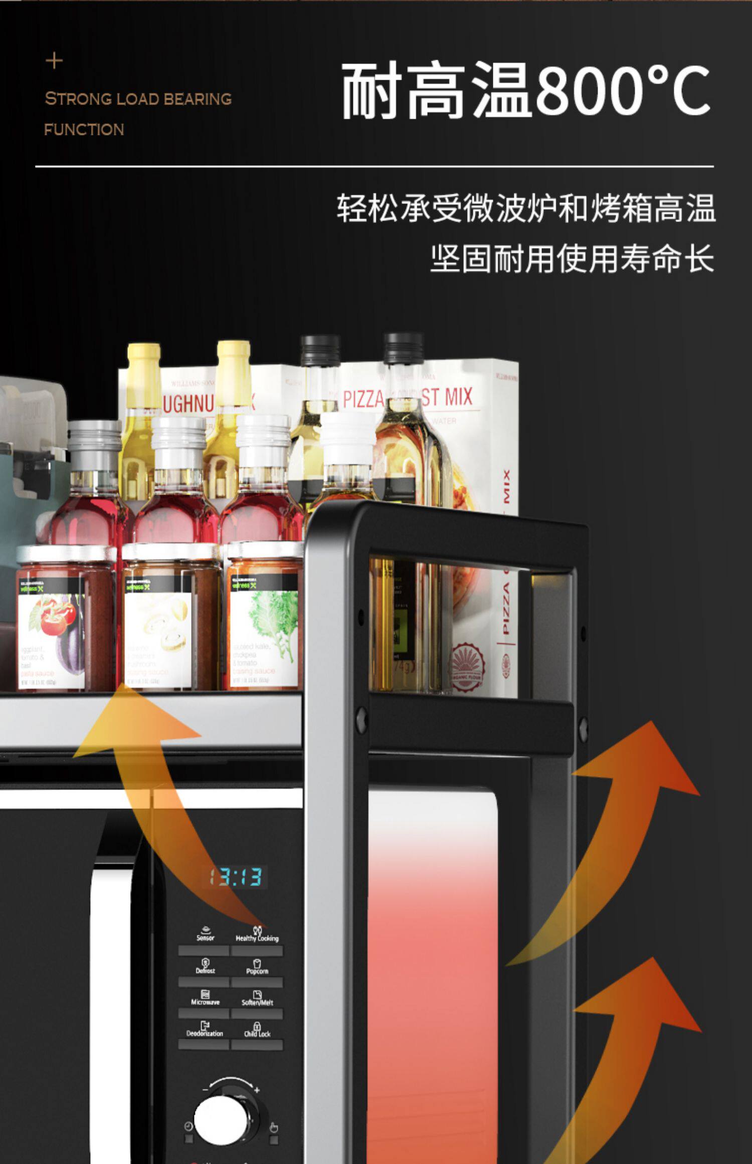 Экстракция кухонная каркаса для хранения микроволновой печи, домохозяйственная двойная столешница для настольной столешницы для хранения рисова
